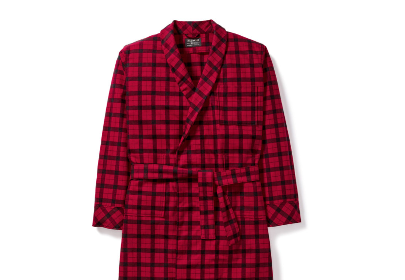 This rugged robe is warm yet breathable, made out of 8-oz. cotton brushed flannel. The knee-length cut means it’s not cumbersome to walk around in, and it has one chest and two waist pockets for maximum utility.