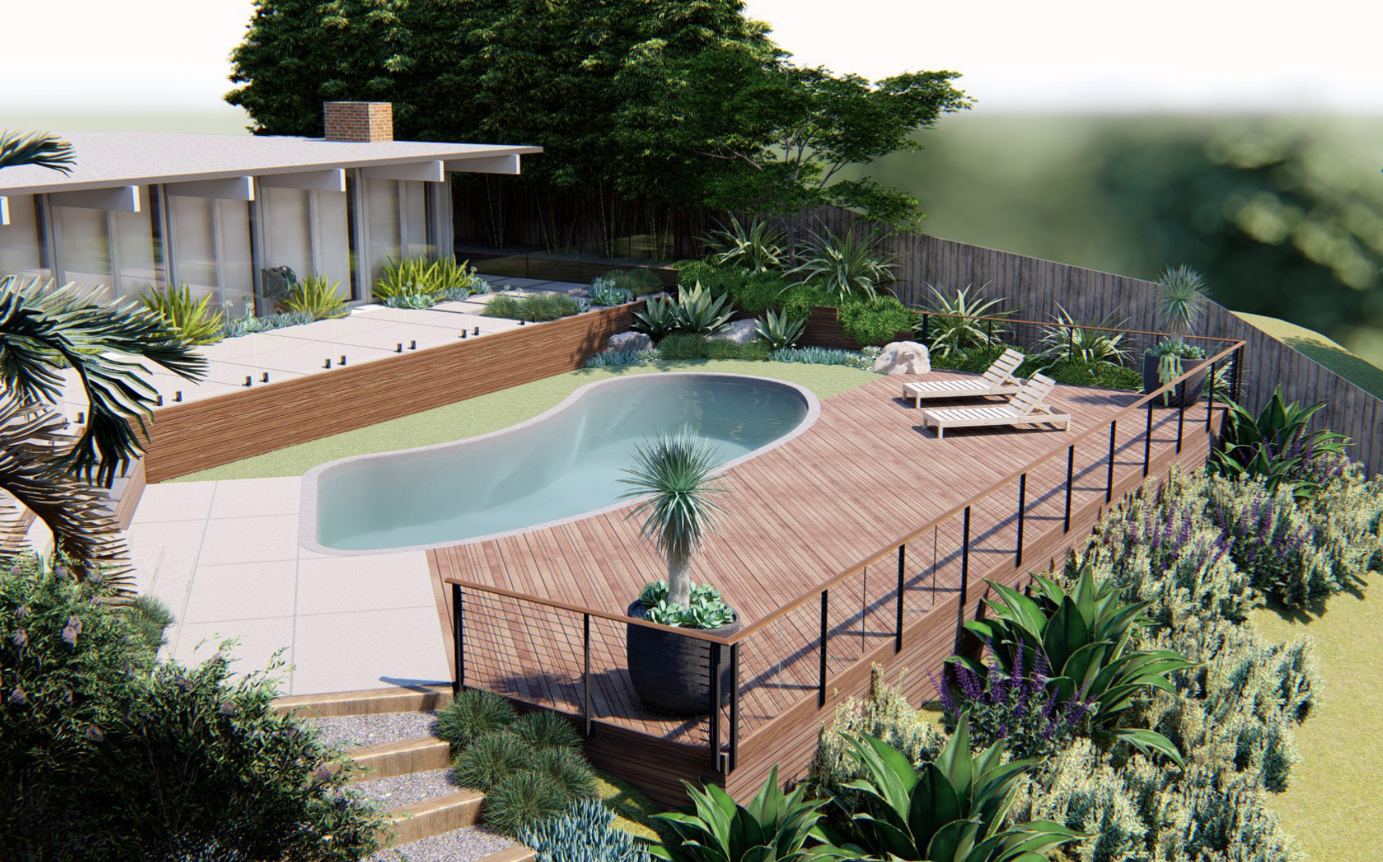 This Mid-Century Home’s Revamped Yard Has a Pool, an Outdoor Dining Area, and Kid-Friendly Features