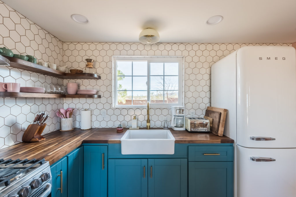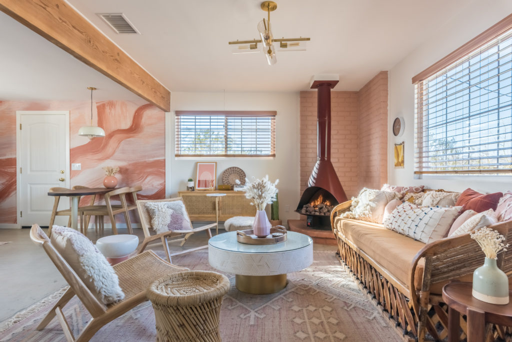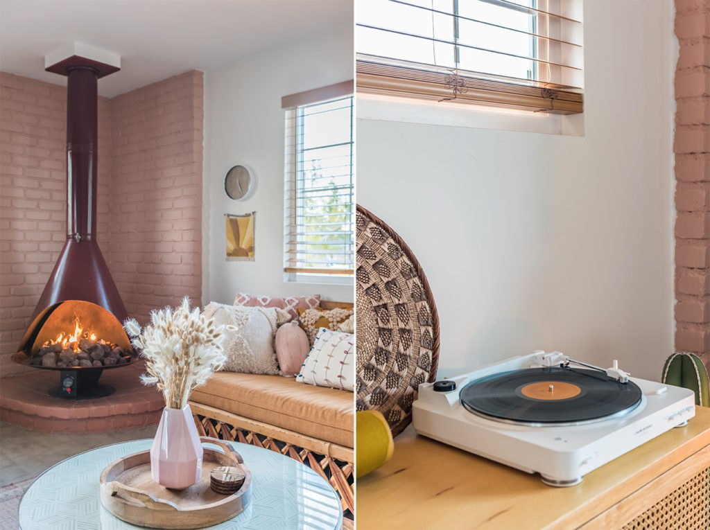 A: I come from a fashion background so I’ve always had an eye for curation and aesthetics. I pull my inspiration from everything, from travel to boutique hotels to Airbnbs. Our exterior color was inspired by a local hotel, 29 Palms Inn. Some of my favorites places on Instagram include @hoteljoaquin, @korakia, @thecaptainwhidbey, and @thejoshuatreehouse.