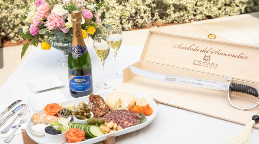At Domaine Carneros, you can make an appointment to learn sabrage, aka the art of lopping off the top of a wine bottle with a saber.