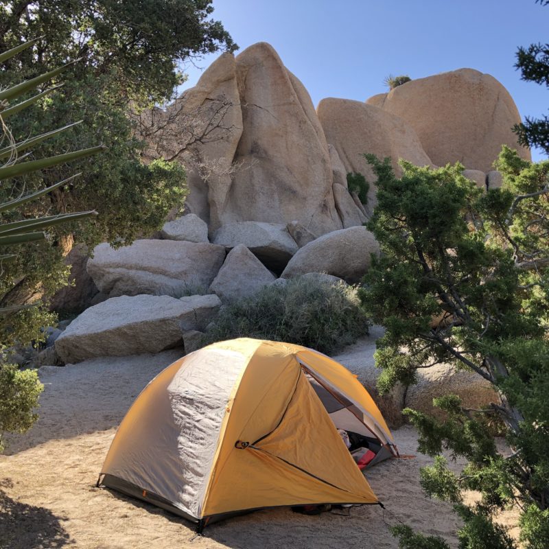 Later, when we arrive at Jumbo Rocks, we discover that not all campsites are created equal: ours is right next to another campsite, whereas others are more set apart. The campsites near the entrance seem to be busier than the ones on the east end. All good info to have, but unavailable on either app. We’ve put out our fire and cocooned ourselves into our Marmot 15 degree mummy bags by 9 p.m., but the campsite next to us is unfortunately occupied by three rowdy guys who keep us up all night, cooking and gossiping loudly about The Avengers until 2 a.m. We were hoping to find community interactions via The Dyrt or Hipcamp, but not ones like this. We could’ve stayed in L.A. for this conversation.
