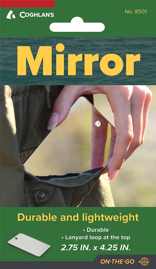 As with any gear, none of it does any good unless you know how to use it. We practiced aiming this mirror at targets and doing the signals of three, which you can learn to do on this YouTube video.