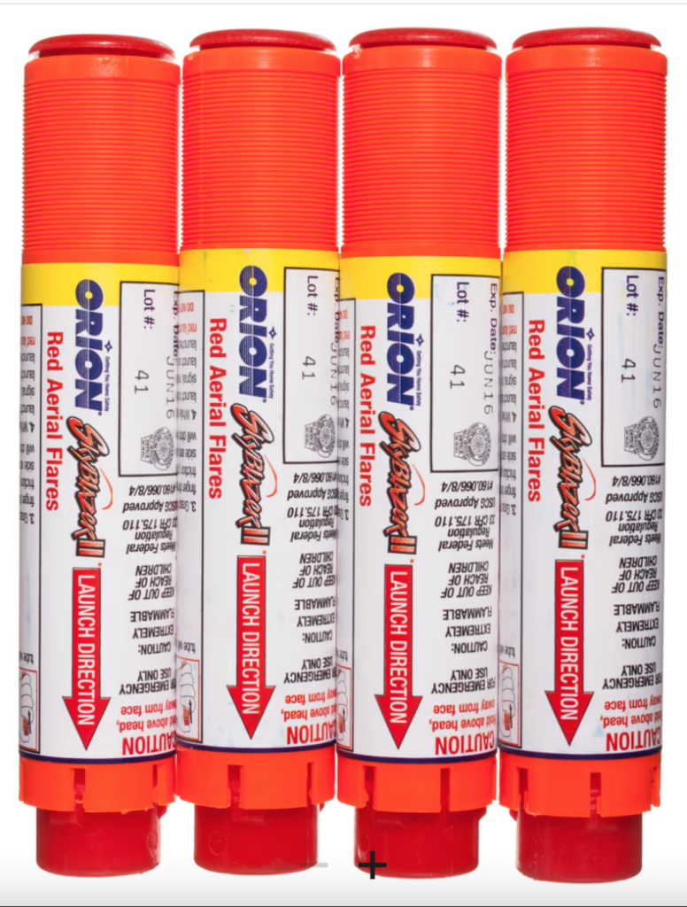 Traditionally used for boating, these can be used with your other signaling, particularly when you may hear a plane passing over or see activity nearby. Use them wisely, as they are not reusable.