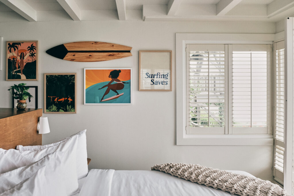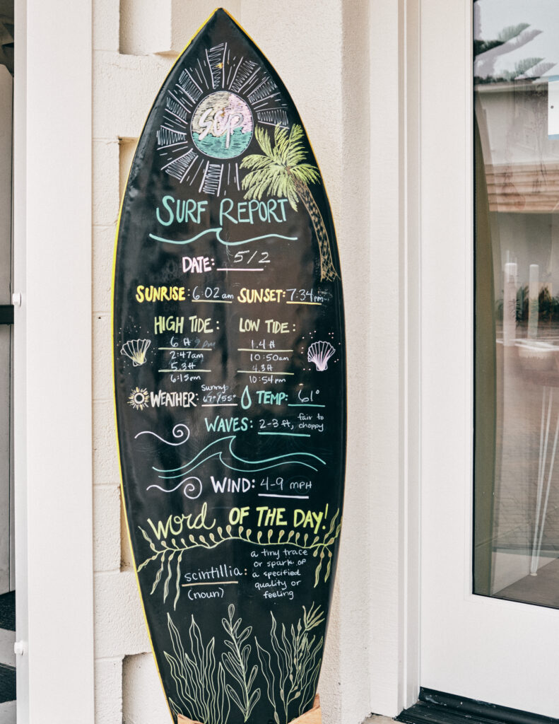 Instead of checking Surfline for the morning report, guests can peer out the window at the break below, which is said to be the location where skim boarding was invented by two local lifeguards back in the 1920s. The Laguna Surf Lodge team also updates a chalked board in front of the lobby with more precise Surfline updates.
