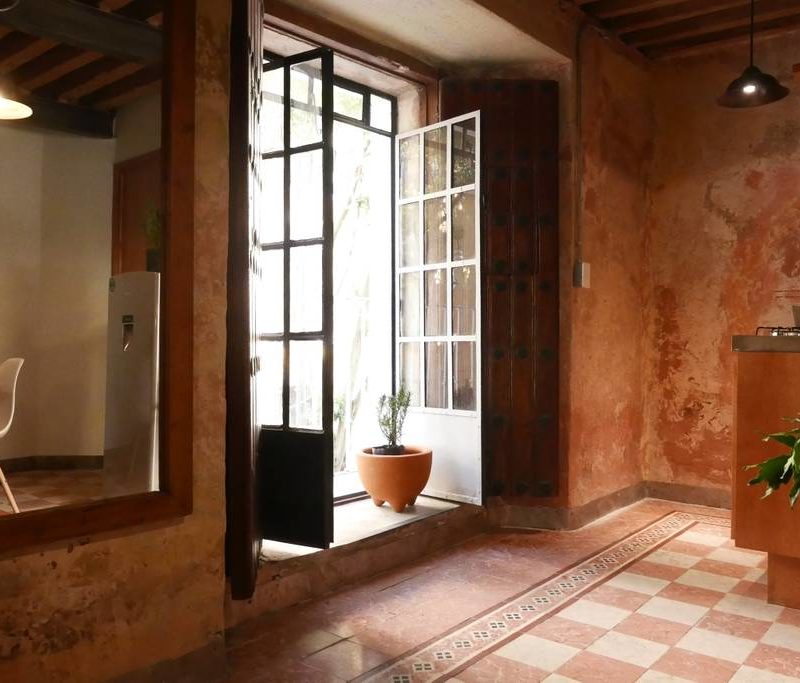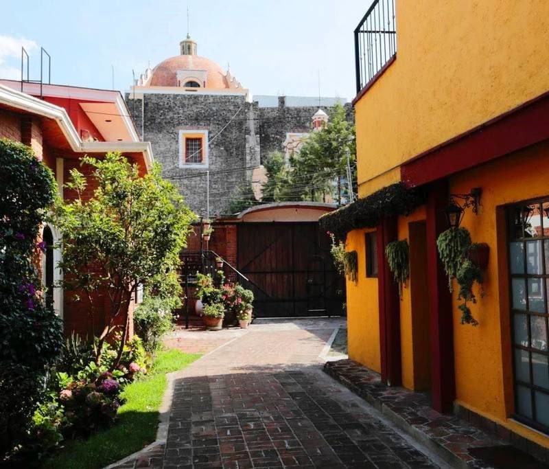 Stay three blocks from the pyramid of Cholula, just outside of Puebla.