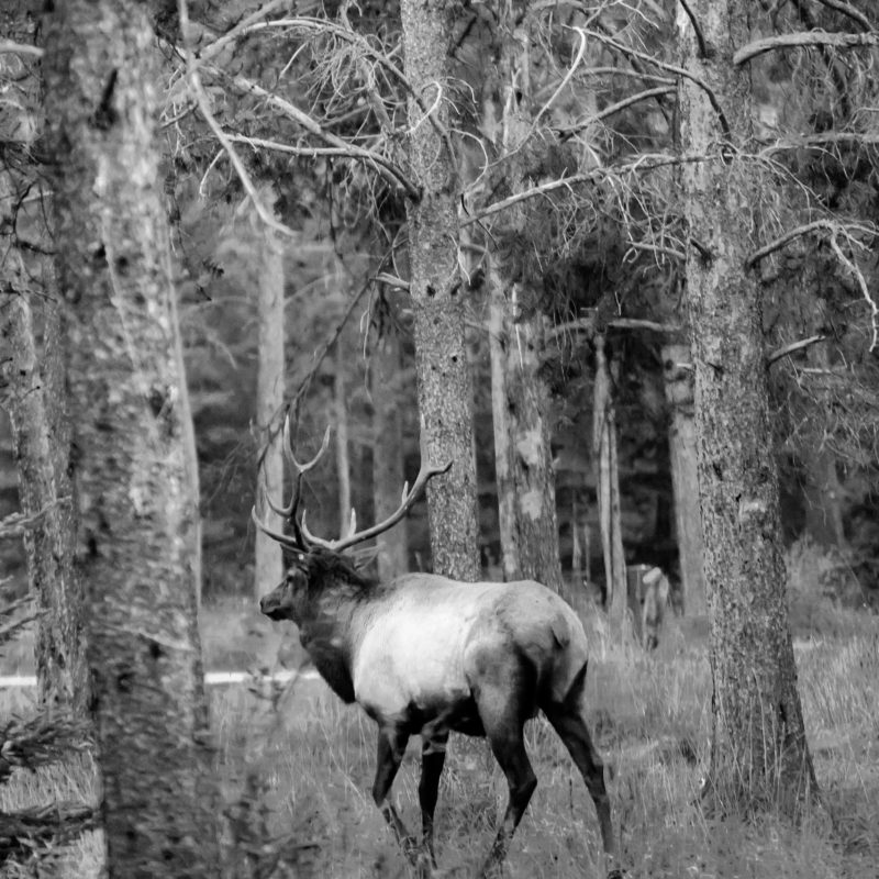 Too soon, he comes rushing back and begs me to follow him toward the restroom. There’s a cry and a clatter before I finally see them: two bull elk in combat, resplendent with their gnarled crowns and thick coats. They stop, huff, and briefly graze. Then they’re back, their horns cracking together for a small audience of gawking campers. I keep my distance. Finally the elk calm down, and everyone wanders back to their simple campsites.