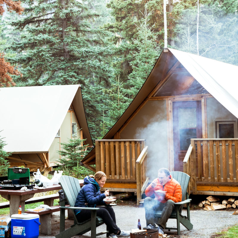 Tent Camping: You’ll find 30-plus campgrounds scattered throughout the Canadian Rockies’ three adjacent national parks, Yoho, Jasper, and Banff. They range from easily accessible sites with showers, firepits, and restrooms to bare-bones hike-in locations with room for just a few dozen tents. Interested in backcountry camping? Reserve a permit through the Parks Canada system, which began serving Jasper two years ago and launched for Yoho and Banff National Parks this past March. Whenever and wherever you go, bring layers and a warm sleeping bag–even at the height of summer, it can get mighty cold up here. From $7.45 U.S./night; parkscanada.gc.ca.