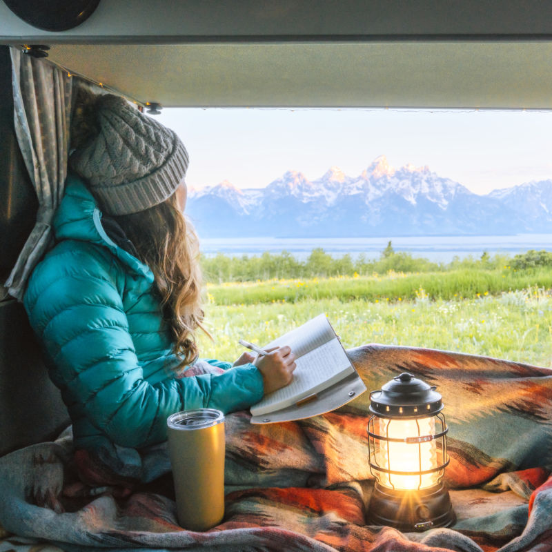 As you would imagine, the special moments we experienced far outweighed the bad. We had to pinch ourselves during nights where we would fall asleep under a blanket of stars, or those times we stood on mountain summits watching a golden sunset, and every day that we had the privilege of waking up somewhere new and exciting. Living in the van taught us to get by with less. We recycled through the same outfits day in, day out, slept cramped up next to each other every night, cooked basic meals, and went without comforts like TV and a proper desk to work at. Instead, we replaced these things with new experiences, the chance to journal and reflect, to meet interesting people, and to spend quality time together as a couple. —Matthew and Renee Hahnel