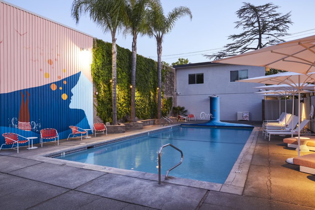Architect Homer A. Rissman designed this Santa Rosa escape in 1957, and its midcentury design has been reimagined. Commissioned art pieces can be found throughout the contemporary hotel, including a stunning wall mural by Serge Gay Jr.