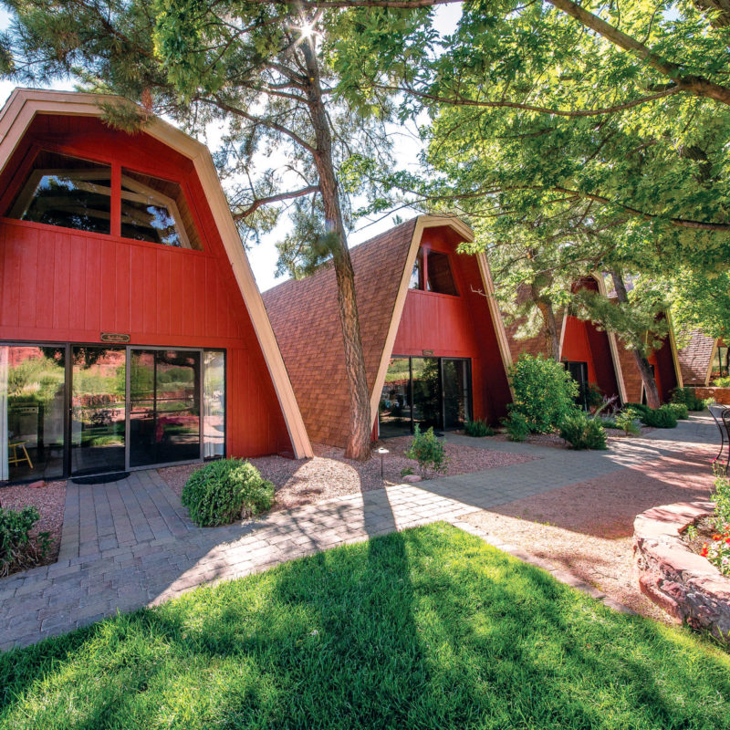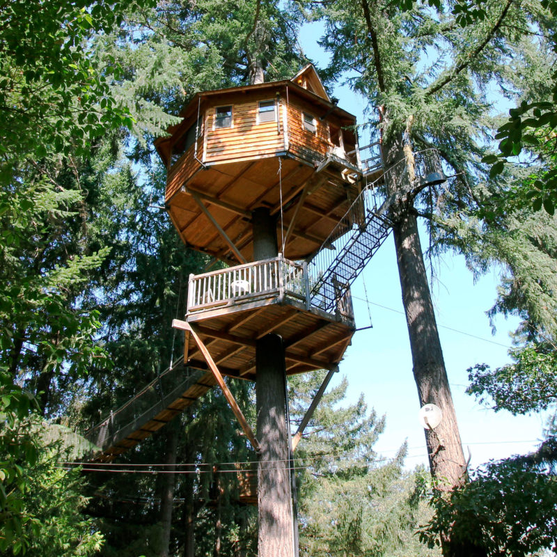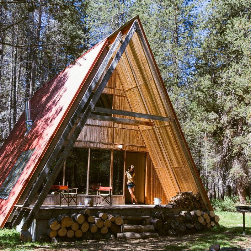High Camp owners Justin and Austin Donohue roll in to join us, haggard but happy. The Donohues bought the camp in early 2017, shortly after escaping Seattle for rural mountain life in the nearby community of Plain. Justin, a 36-year-old Michigan native, was working in corporate marketing at REI and wanted a change, and Austin, a Washington native, 32, could take her remote job anywhere. “Bill and Peg Stark built the first A-frame up here in 1978,” Justin tells us. “It had a canvas tent roof and one simple room. Seriously rustic.”