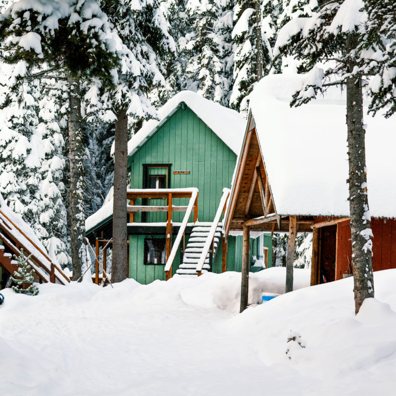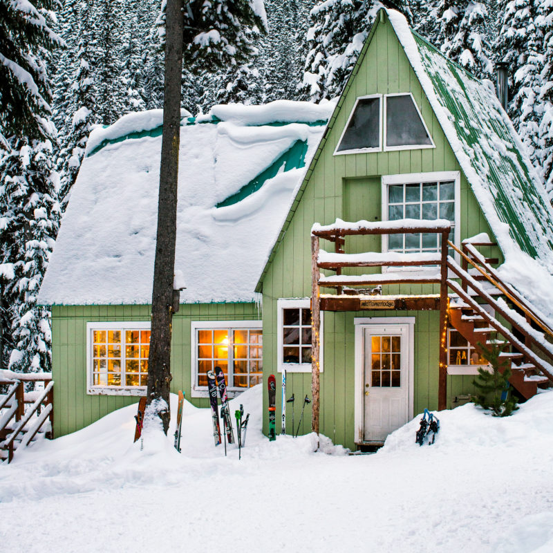 Packed inside the Rover and rapidly steaming up its windows are two families: mine and my brother-in-law’s. We’re embarking on a three-day visit to Alpine Lakes High Camp, a cluster of nine A-frame cabins and one small lodge tucked into the trees at 5,000 feet, about 100 miles east of Seattle. Established in 1978, High Camp is bare-bones enough to feel like 1878: Water is spring-fed, and cabins have neither running water nor electricity—only woodstoves for heat and outhouses for bathrooms. Activities are decidedly offline and sporty, including snowshoeing and backcountry skiing. Kids’ entertainment is even mellower, with puzzles and endless material for snowballs.