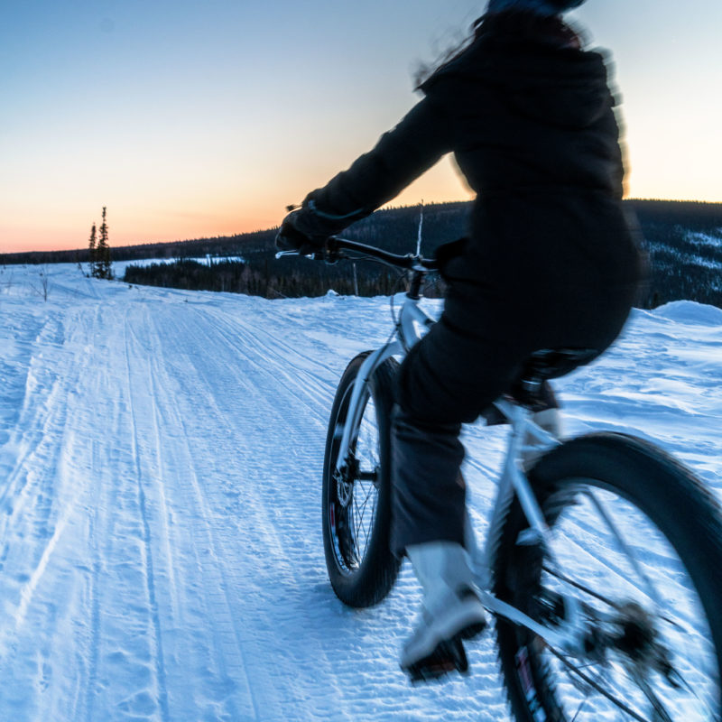 “I thought, if they can do it in Finland and Iceland, there’s no reason we shouldn’t be able to do it in Alaska,” Butler says before turning off onto Himalaya Road, a narrow, snowed-over strip that doesn’t look like it leads to anywhere in particular. But it does, and upon our arrival at Basecamp I text my mom in Florida a picture. “It looks like Mars,” she replies. And it’s true. The walk across the cratered ridgeline toward the pod where we’ll sleep over the next few nights has a space-colony vibe, the sky so intensely blue it’s almost otherworldly.