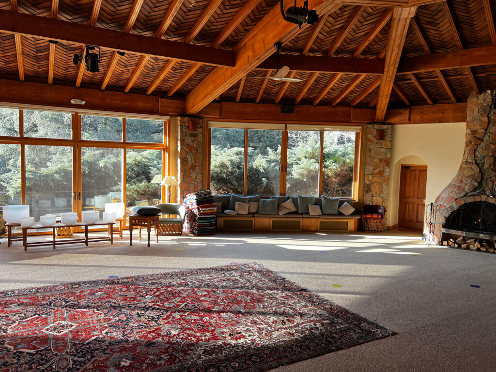 It wasn’t just a one-day-wonder: The rest of my time at the retreat followed suit. I would work during some portions of the day, but meet my husband for other activities: I crushed tower Pilates, he channeled his inner gymnast with aerial yoga, and we both nailed our hip-hop class’s dance routine. But perhaps our favorite time of day was the sound bath, which took place in a sun-drenched room with floor-to-ceiling glass windows. We would gather blankets and pillows, claim a little spot on the carpeted floor (preferably by the roaring fireplace), and listen to a medley of crystal bowls. Generally, lying for 50 minutes with nothing but my thoughts would be a prime time to panic about everything I should do, but here? I felt this inexplicable urge to clear my mind and just… well, be.