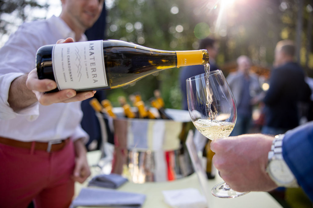 Meaning “for the love of the earth,” Amaterra is a state-of-the-art winery and restaurant set amid the tree-filled slopes of Portland’s West Hills. Featured as one of “8 Winery Wedding Venues to Book in the US” on Brides.com in 2022, Amaterra is just minutes from downtown Portland. Serving as a destination for both residents and visitors alike, Amaterra features a 12-acre vineyard, chef-driven restaurant, outdoor event lawn and expansive valley views. The gravity-flow winery produces 10,000 cases of wine annually, which are predominantly Pinot Noir and Chardonnay.
