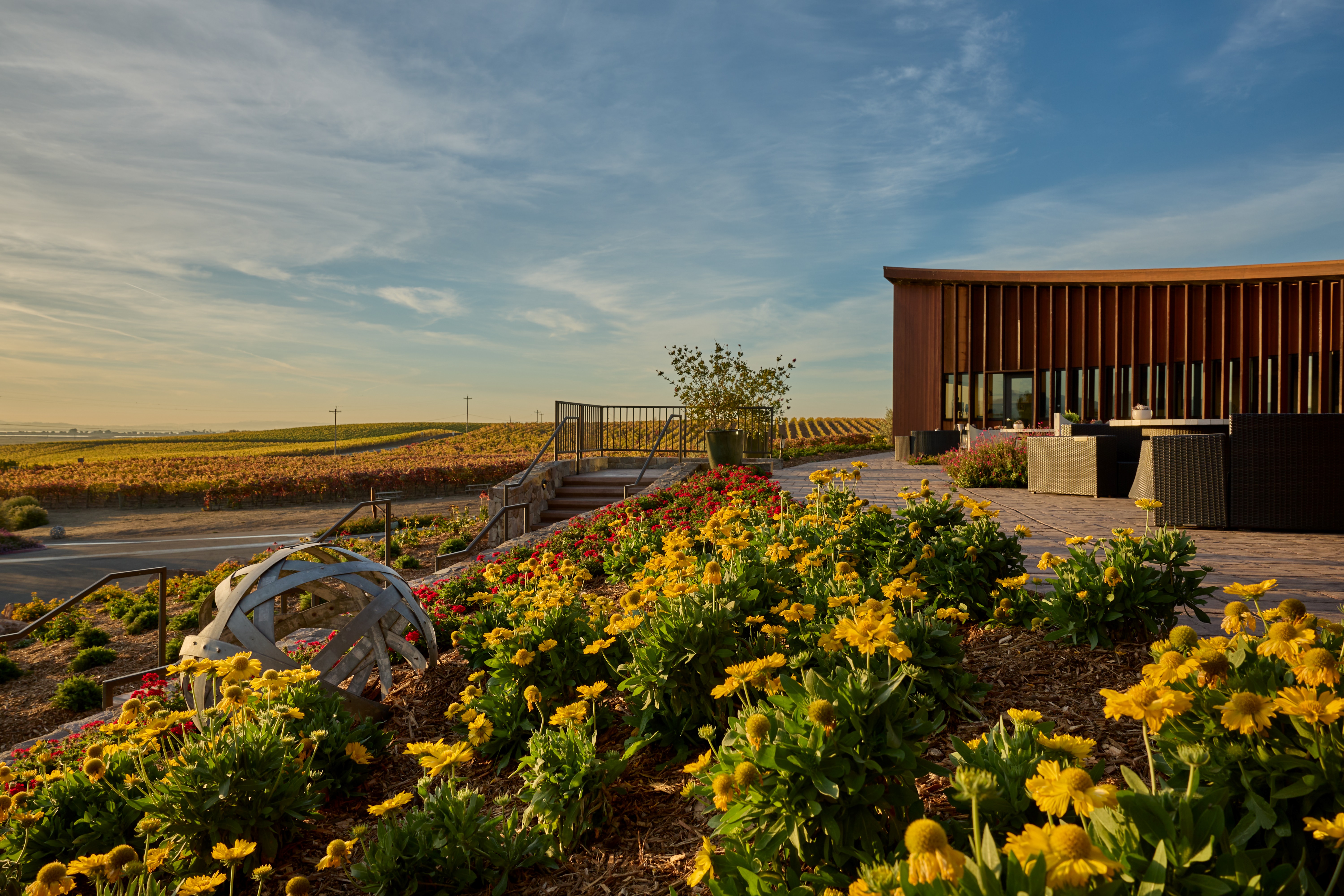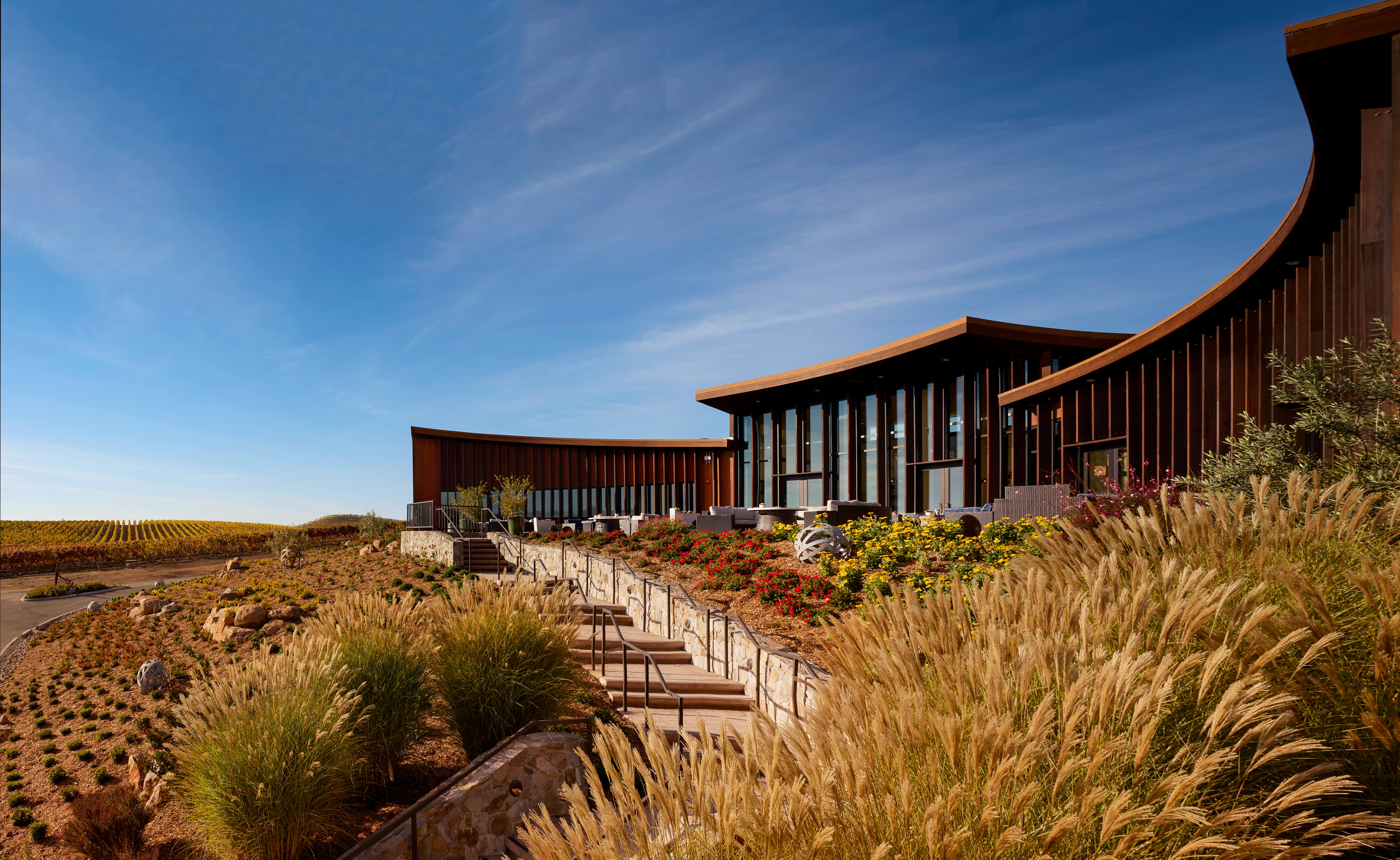 Bouchaine was founded in 1981 by Gerret and Tatiana Copeland and is today one of the leading producers of sustainably farmed Chardonnay and Pinot Noir in the Carneros AVA. The estate comprises 104 acres, including a state-of-the art winery and new hospitality center and culinary kitchen. The vineyards at Bouchaine are greatly influenced by the adjacent San Pablo Bay, where cool breezes and the daily influx of fog allow cool climate varieties to shine. The marine influence also helps to develop beautiful acidity in the fruit, resulting in wines with vivid energy and texture. Noted as the first “Fish Friendly Farming” certified vineyard in Napa Valley, the winery is also Napa Green land and winery certified.