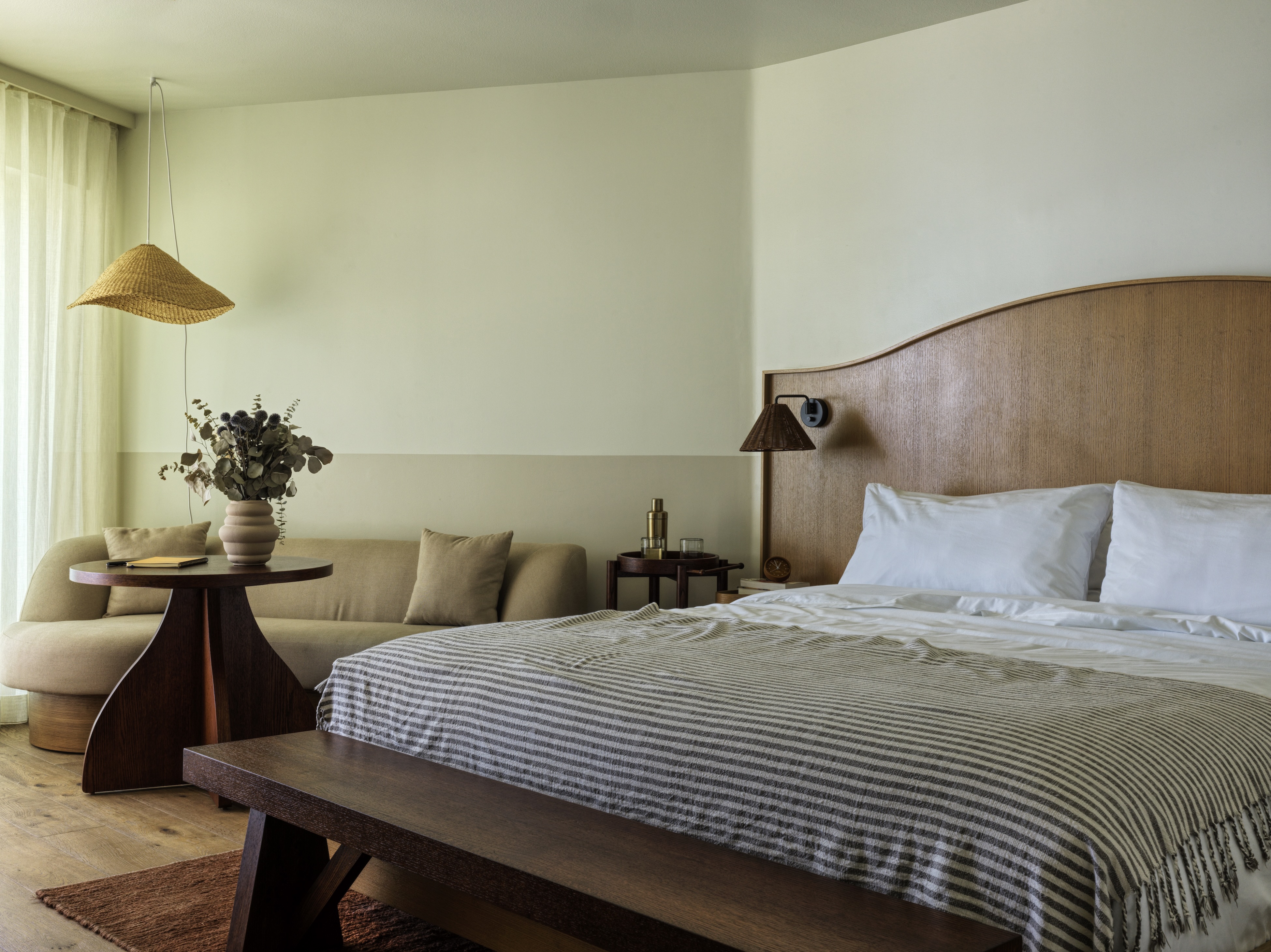 Formerly The Inn at Laguna Beach, Marc & Rose Hospitality has reimagined the iconic oceanfront property as Casa Loma Beach Hotel. The 70-room luxury boutique hotel, perched on Laguna Beach’s rocky cliffside, boasts unrivaled ocean views just steps from Main Beach. The hotel design taps into the tones and textures of its beachside landscape, combining a laidback Mallorcan mindset with the vivacity of California’s coastal spirit. Throughout the property, guests are enveloped by a calming color palette of sandy neutrals, clay tones, and seaside greens, framing panoramic views of the sea. The lobby bar and lounge is the social hub of the project, where handcrafted textures reflect the tradition of craft in Laguna Beach, and the organic influence of the ocean. Clever nods to original surfboard shapes are also evident, including in the guest rooms where the custom beds, built-in desks, sofas, and case goods take on sinuous forms.