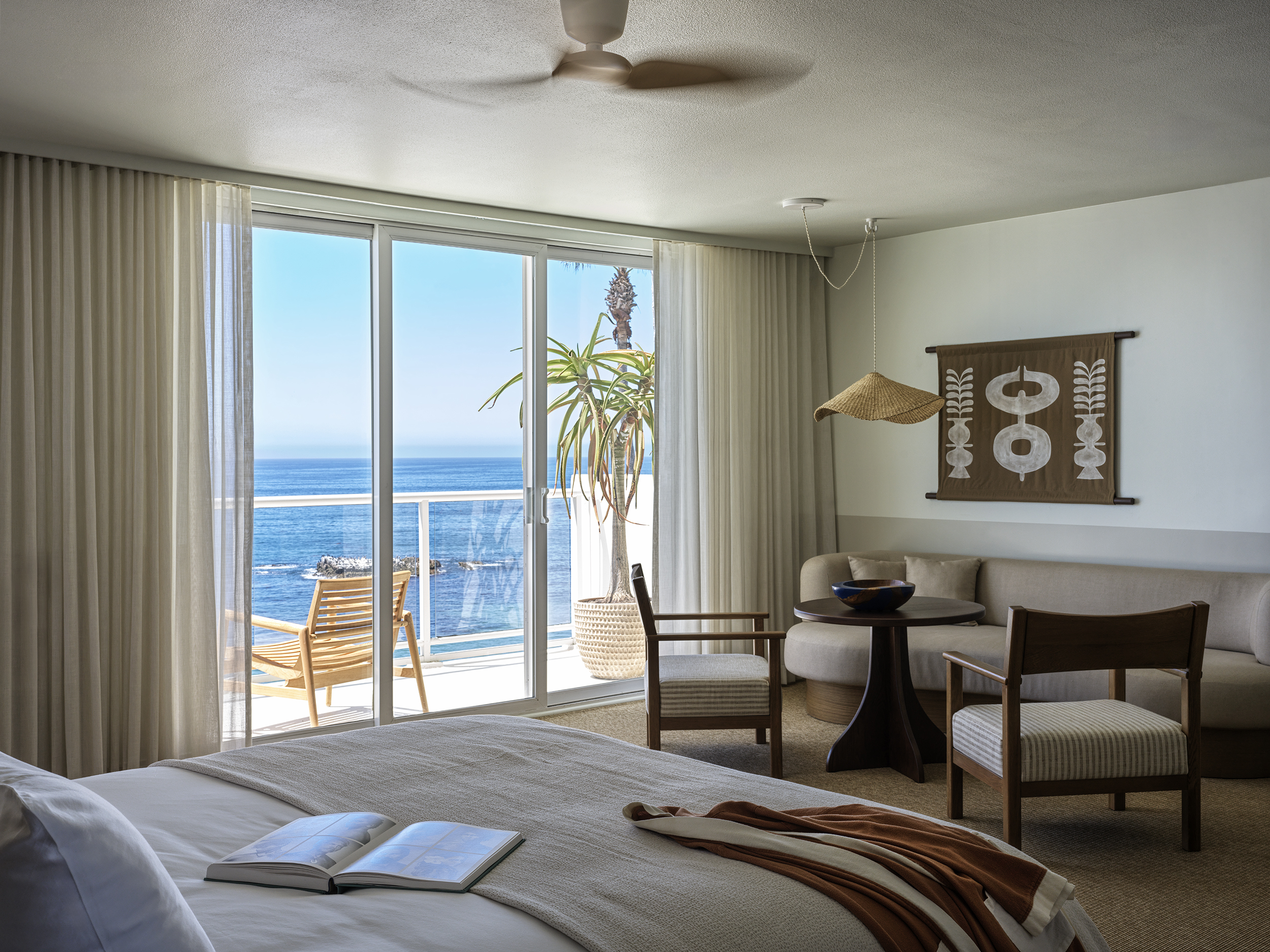 Casa Loma Beach Hotel, reimagined by Marc & Rose Hospitality, is a 70-room boutique retreat perched on the iconic cliffs of Laguna Beach. The design captures the essence of its coastal surroundings, merging the laidback spirit of Mallorca with the dynamic energy of California’s shores. Inside, the property is wrapped in the soothing hues of sand, sea, and stone, that evoke the natural beauty of the beach just below, framing breathtaking vistas of the Pacific. The hotel’s lobby bar and lounge serve as a lively gathering space, where handcrafted details celebrate Laguna Beach’s artisanal heritage and the organic flow of the ocean. Subtle surf-inspired elements are woven into the guest rooms, where custom furniture takes on sinuous, fluid shapes that reflect the calming movement of ocean waves. Casa Loma is a serene retreat that provides an experience akin to a private beach club, just steps away from Laguna’s Main Beach.