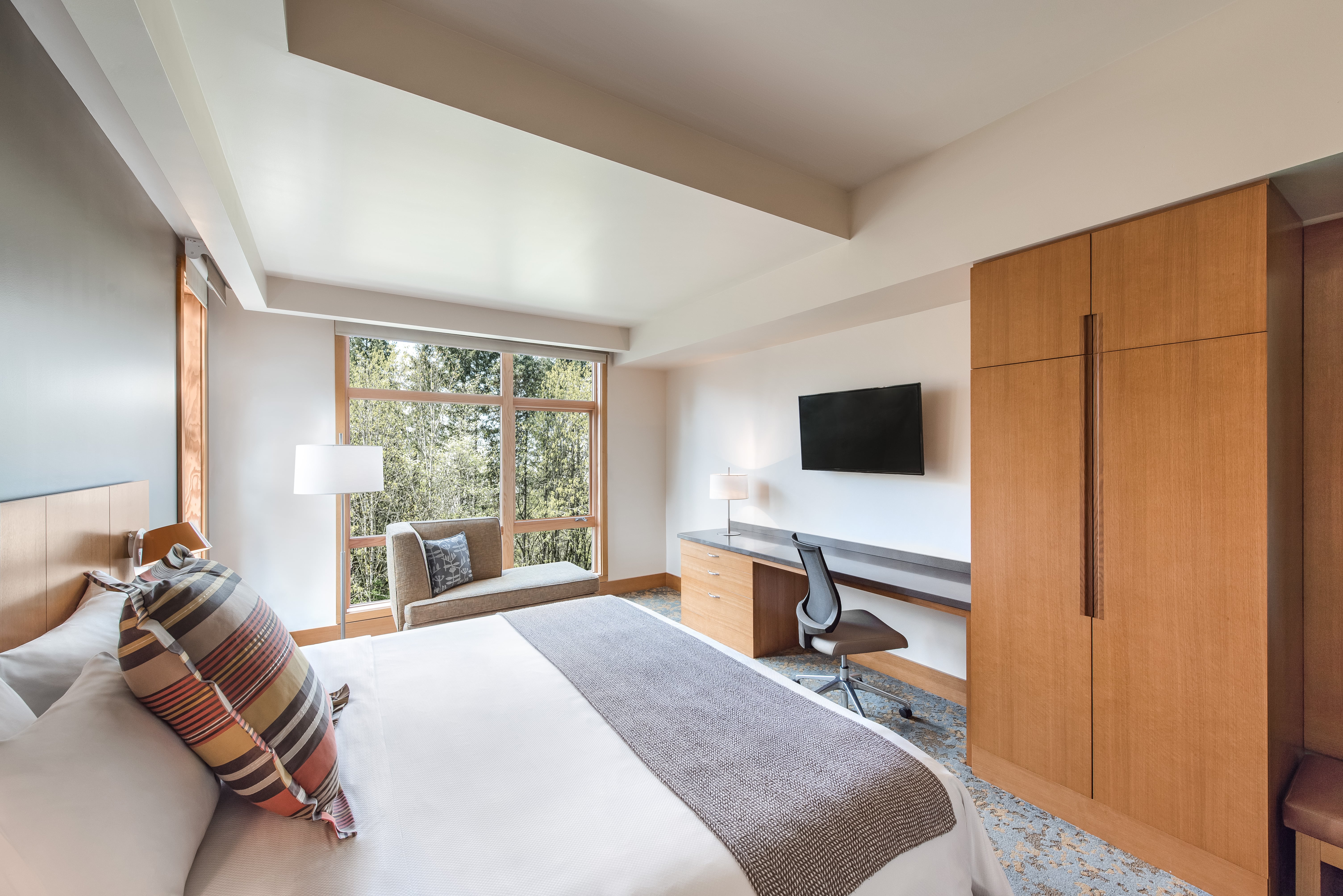 Nestled on 18 acres of natural, protected wetlands, Cedarbrook Lodge is the quintessential Pacific Northwest retreat, consistently ranked one of the top 10 hotels in Washington State. With its proximity to the Seattle-Tacoma airport, Cedarbrook takes guests by surprise with its serene ambiance and lush surroundings, making it a hidden gem in the region. Just a 15-minute drive from downtown Seattle, it provides the best of both worlds: a peaceful escape from the city’s hustle and bustle while remaining close to a plethora of attractions, including world-class performing arts, fantastic shopping, and the iconic Seattle waterfront. Guests can indulge in the delights of fresh, seasonal dining at Copperleaf Restaurant & Bar, Pacific Northwest-inspired treatments at The Spa at Cedarbrook Lodge, and cozy comfort in the 167 guest rooms. Scenic walking trails wind through the property, offering guests a front-row seat to the beauty of Western Washington.