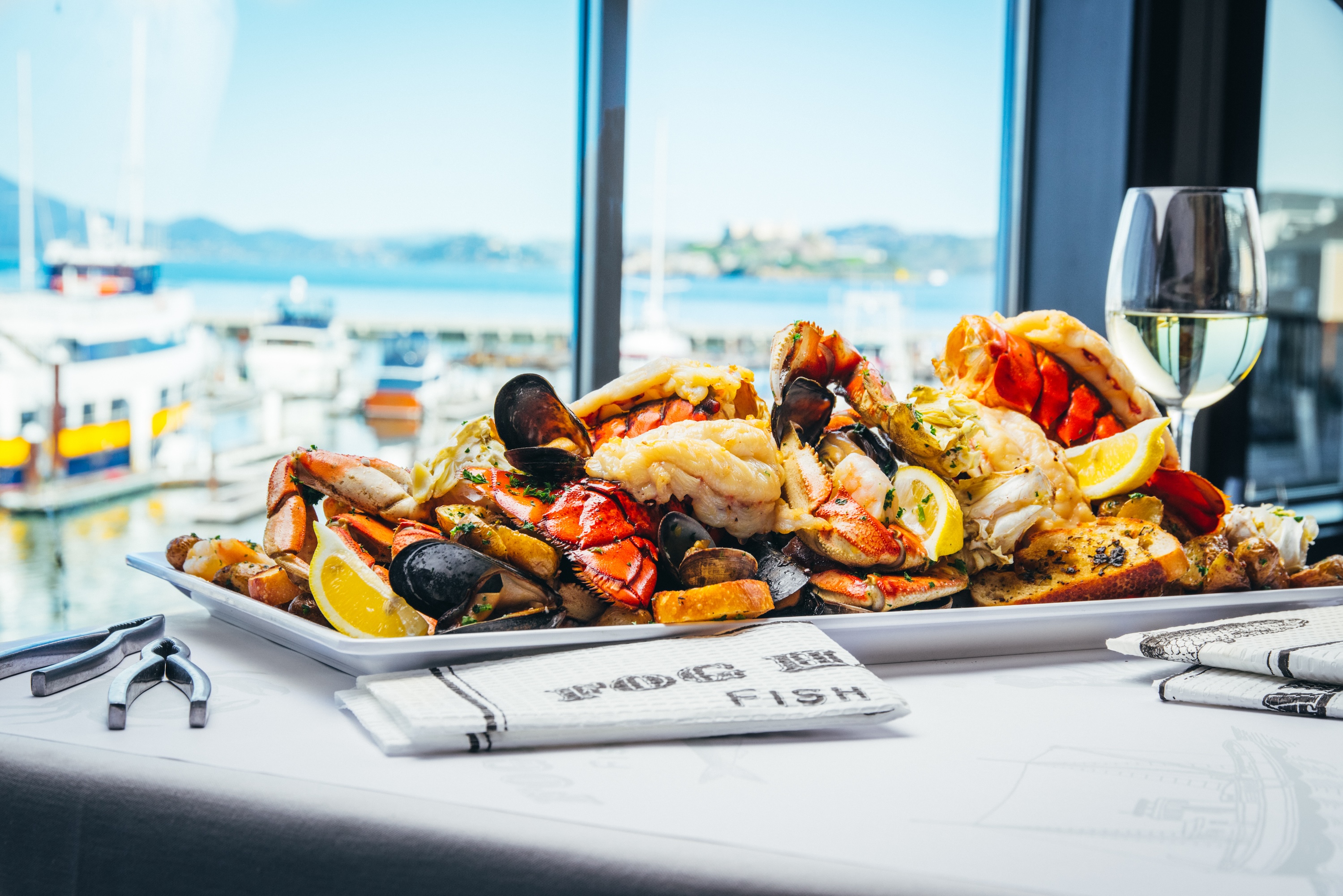 Fog Harbor Fish House is a family-owned San Francisco institution known for serving the city’s freshest sustainable seafood. Its spacious dining room has large windows that overlook the San Francisco Bay, offering views of the Golden Gate Bridge and Alcatraz Island.