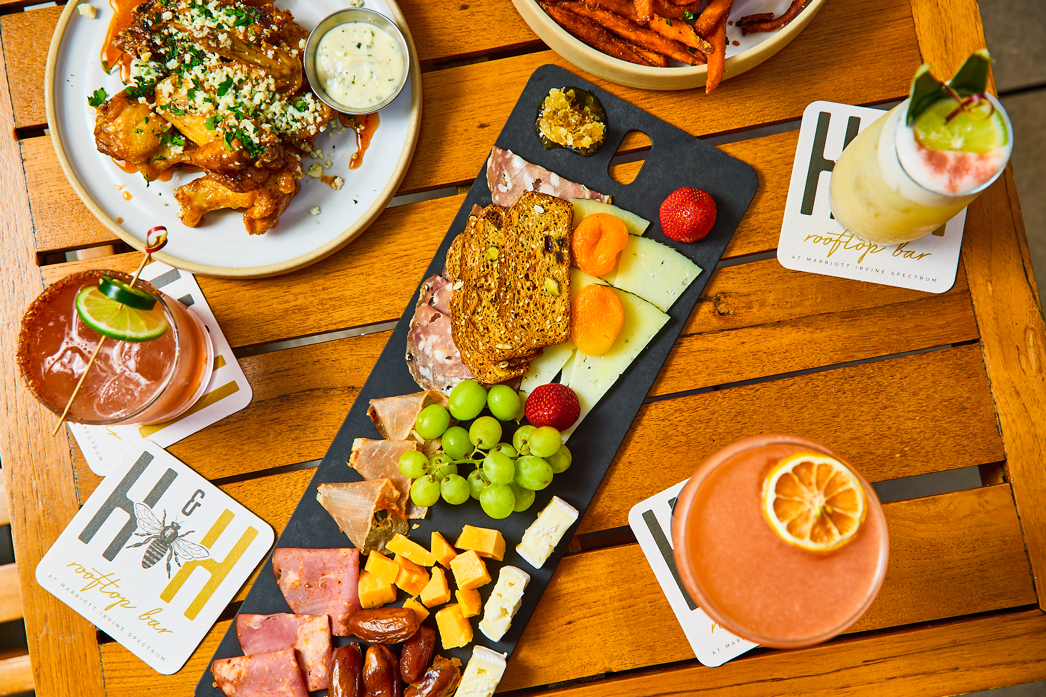 Hive & Honey is Orange County’s buzziest rooftop bar atop Marriott Irvine Spectrum. Spend the evening at this 3,500-square-foot bar and lounge, where breathtaking views of Orange County set the stage for sunset revelers to sip craft cocktails, savor tapas-style bites, and enjoy local brews—including Marriott Irvine Spectrum’s exclusive Orange Vintage by Unsung Brewing. The rooftop is the perfect destination for any celebration—from intimate gatherings to private events and full buyouts. Select cocktails include honey and boast cheeky names such as Wasp’s Nest, Bees Knees, and Nectar of the Gods. On weekends, Hive & Honey elevates the experience with its all-day brunch. Guests can indulge in crave-worthy dishes like French Quarter Beignets, Chicken & Waffle Sliders, and Breakfast Tacos, all while sipping cocktails and listening to the DJ. Whether toasting the sunset or celebrating a special occasion, Hive & Honey provides the perfect atmosphere for any moment.