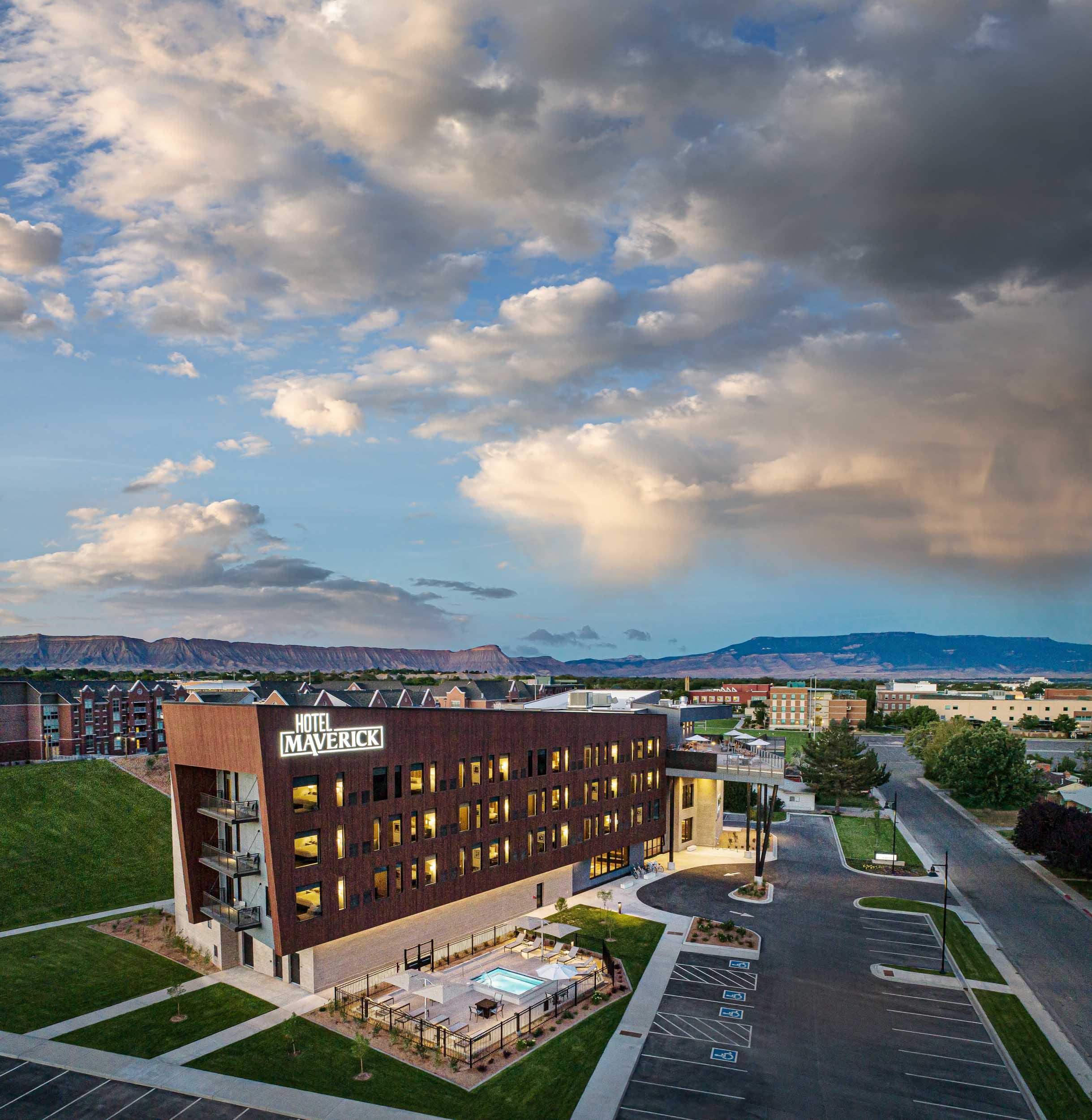 Located on the breathtaking campus of Colorado Mesa University, Hotel Maverick is a scenic destination that fosters the spirit of curiosity. Built against Grand Junction’s sprawling red rock canyons, this unique Colorado locale immerses guests in experiences that feed their wanderlust. Hotel Maverick is the area’s first independent boutique hotel with striking architectural details, unique guest rooms and regionally inspired cuisine. Located onsite is Devil’s Kitchen restaurant and rooftop bar with menus featuring locally sourced ingredients and craft cocktails served against panoramic views of the Grand Mesa and Colorado National Monument. Hotel Maverick’s casual daytime fare can be found at Betty’s Gourmet Coffee which offers high-quality coffee, fresh-made breakfast and lunch specialties, and grab & go treats.