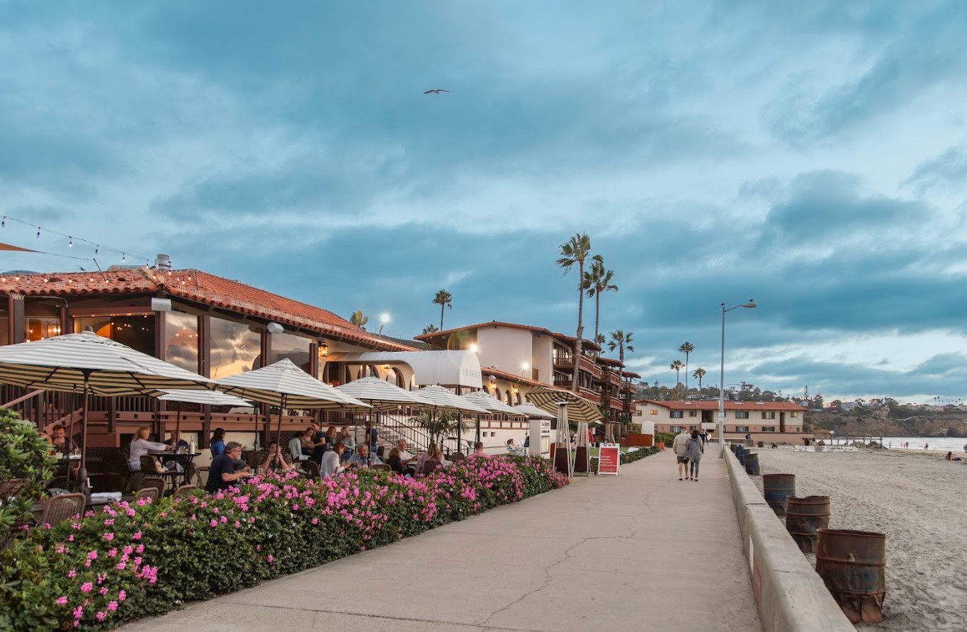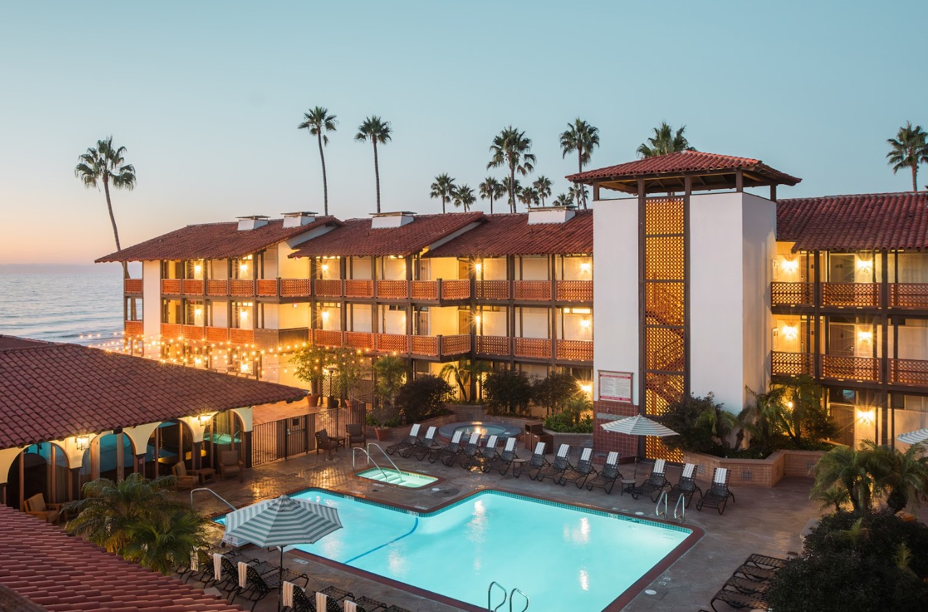 La Jolla Shores Hotel offers an unfiltered SoCal experience, combining beachfront serenity with authentic hacienda-style charm. Steps from the sand, guests wake up to oceanfront and coastal views, with many rooms featuring private balconies and optional kitchenettes for added convenience. Complimentary beach setups make it easy to soak up the sun, while adventure seekers can kayak, paddleboard, bike, or swim in the heated outdoor pool. The hotel’s on-site waterfront eatery, The Shores Restaurant, serves a California coastal-inspired menu with farm-fresh ingredients, sustainably sourced seafood, creative cocktails, and local brews. Whether it’s an early morning coffee, a leisurely lunch, weekend brunch, or sunset drinks, it offers a true taste of the coast. Located within walking distance of La Jolla Shores’ best-kept secrets—including hidden swings, tide pools, and beloved local watering holes—this coastal pet-friendly retreat captures the essence of California beach life.