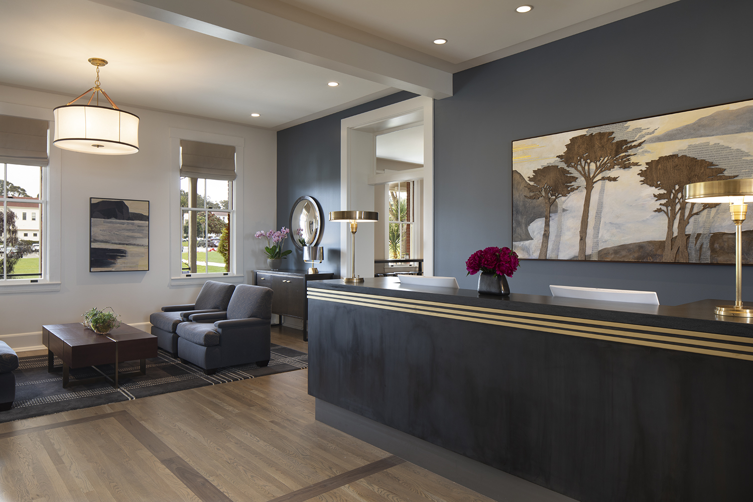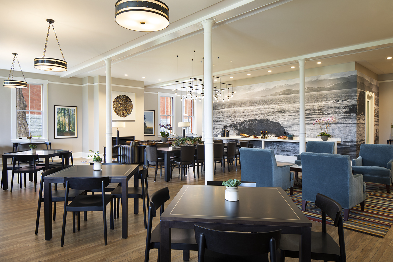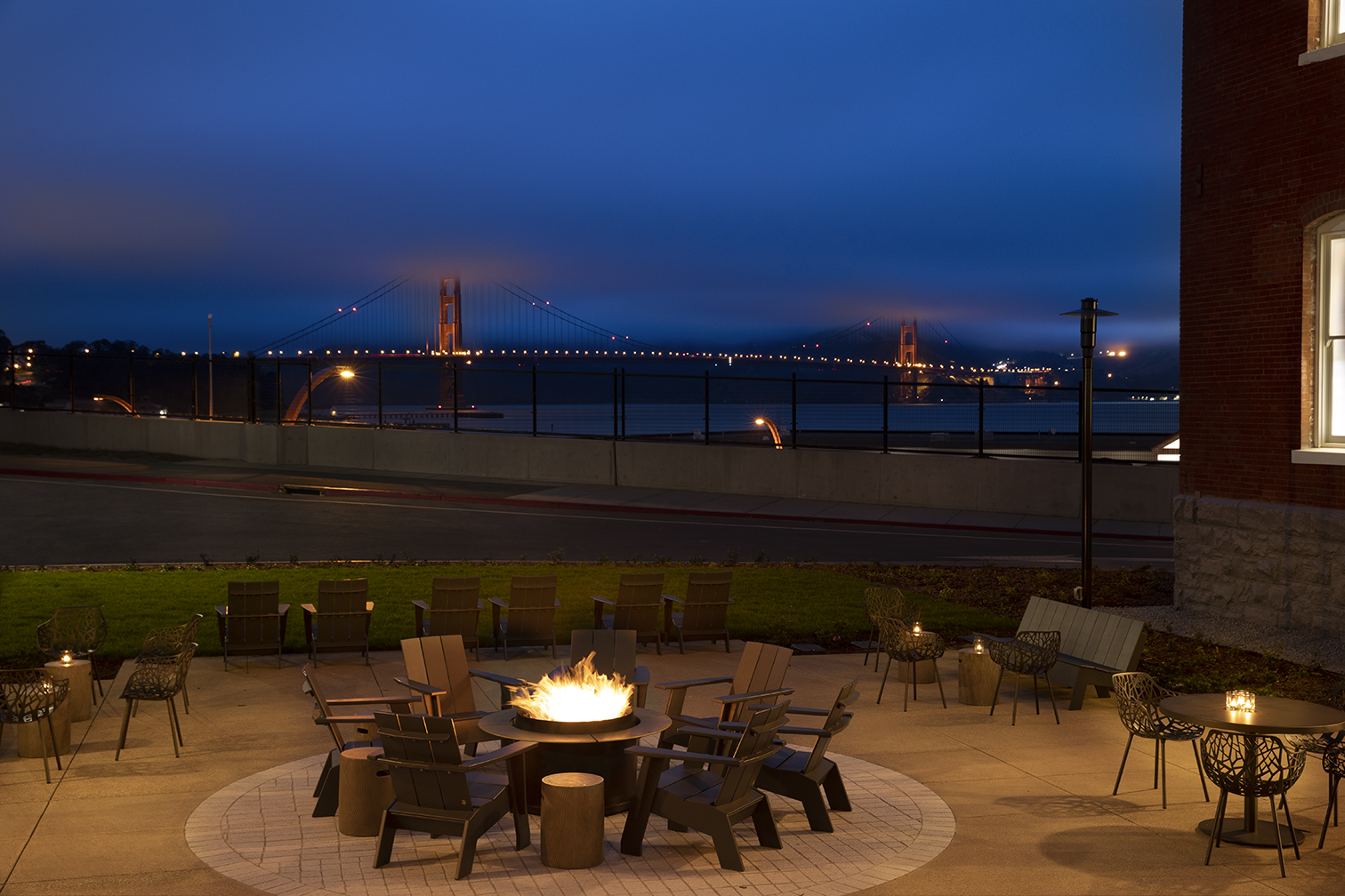 The Lodge is a historic boutique hotel on the Main Post of the Presidio that’s been renovated into a comfortable and contemporary ‘basecamp’ for adventures in a unique national park setting. As San Francisco’s closest hotel to the Golden Gate Bridge, the modern rooms sport views of the forest, the bay, the City, the bridge, or a combination thereof. Guests escape the bustle of downtown and enjoy nature and recreation in the park while being steps away from excellent dining options.