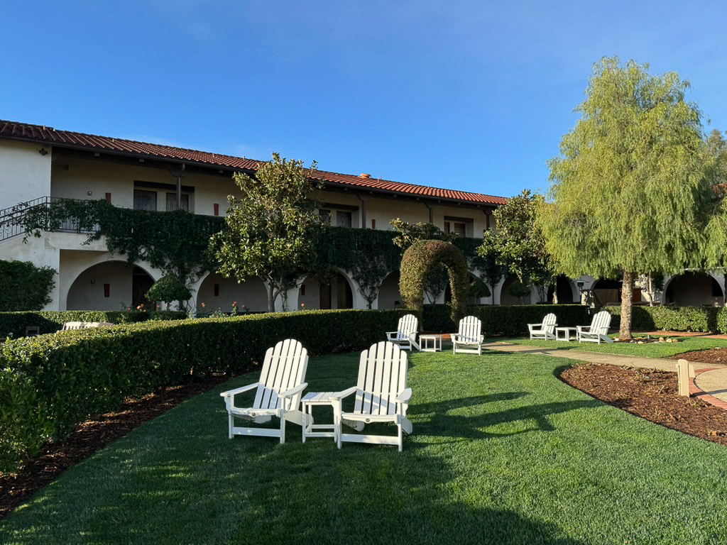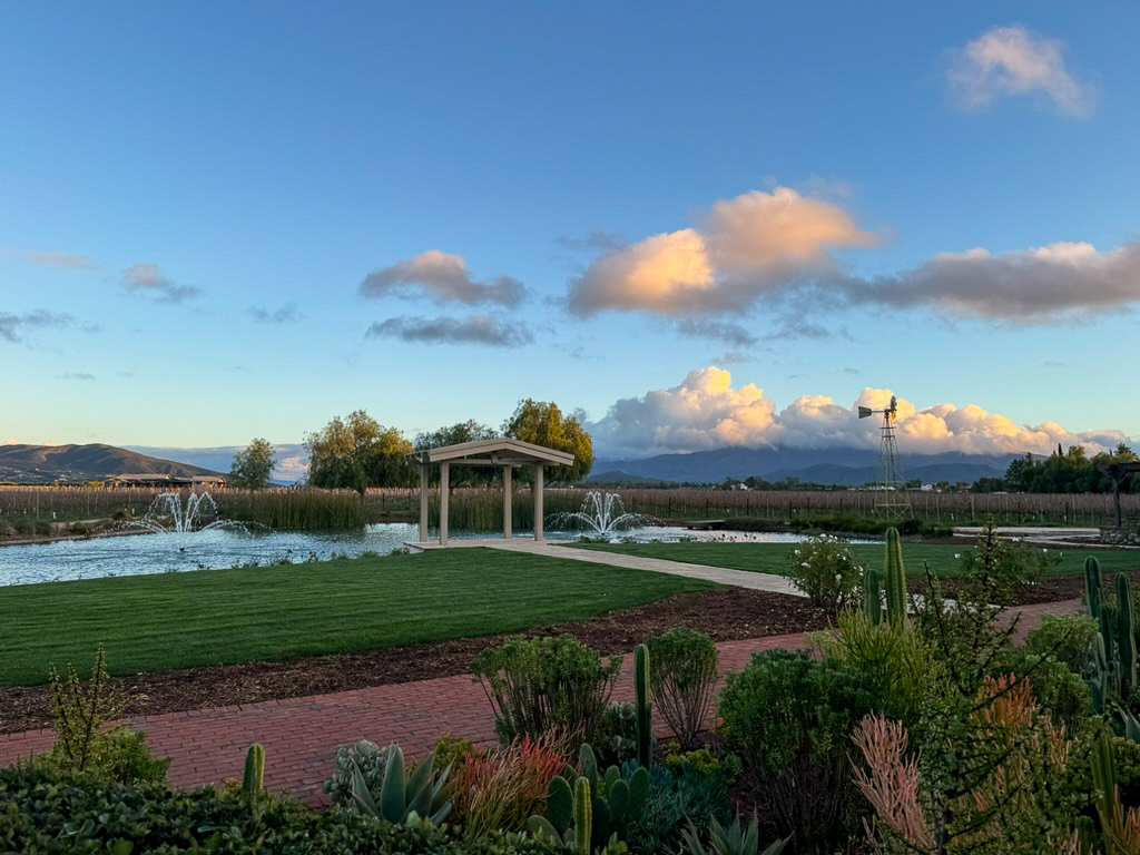 Surrounded by panoramic vistas of estate vineyards, manicured gardens, and distant mountains, our boutique Inn offers a tranquil sanctuary for the discerning traveler. From fireside conversations to leisurely strolls to adjacent tasting rooms, guests are invited to immerse themselves in the beauty of the serene landscape. Adirondack chairs beneath the canopy of pepper trees and a serene one-acre pond provide moments of peaceful reflection.