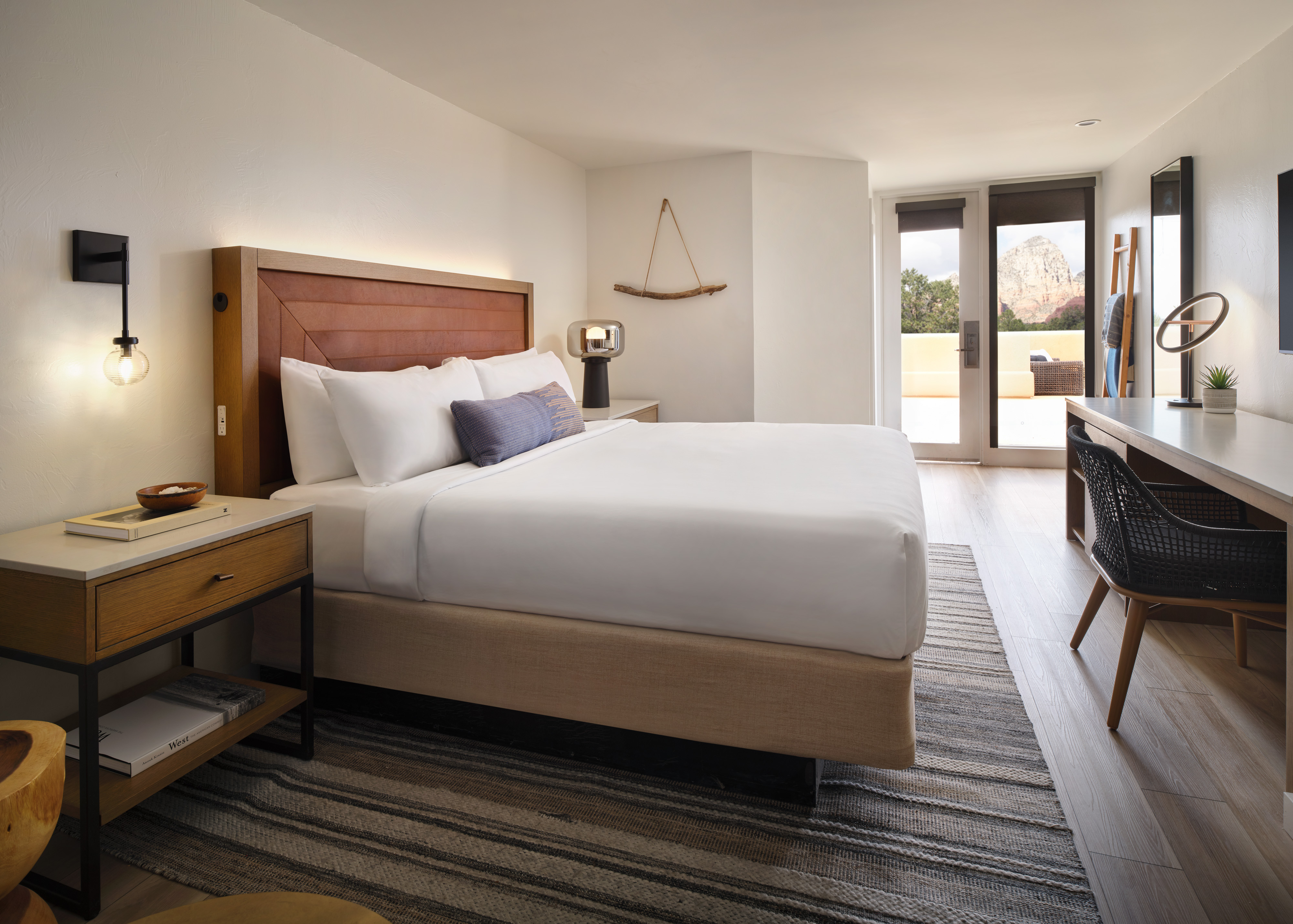 Perfectly positioned in the gap between earth and sky sits Sky Rock Sedona, a newly renovated boutique hotel that celebrates the natural beauty, culture, and coveted energy of Sedona with its artful, sophisticated design and soulful spirit. A modern retreat that embraces all the destination has to offer, Sky Rock brings adventure chasers, relaxation enthusiasts and spiritual seekers together with one-of-a-kind experiences that echo all facets of Sedona. Guests of Sky Rock can find solitude in the property’s 109 guestrooms; Southwestern-inspired fare and hand-crafted cocktails at its signature eatery, Bar WooWoo; unique treasures and keepsakes at its funky retail space, The Psychic Shop; inner peace and exploration with the property’s on-site wellness and destination-inspired experiences; and more. Sky Rock is also home to two unique gathering spaces; an outdoor heated pool and hot tub.
