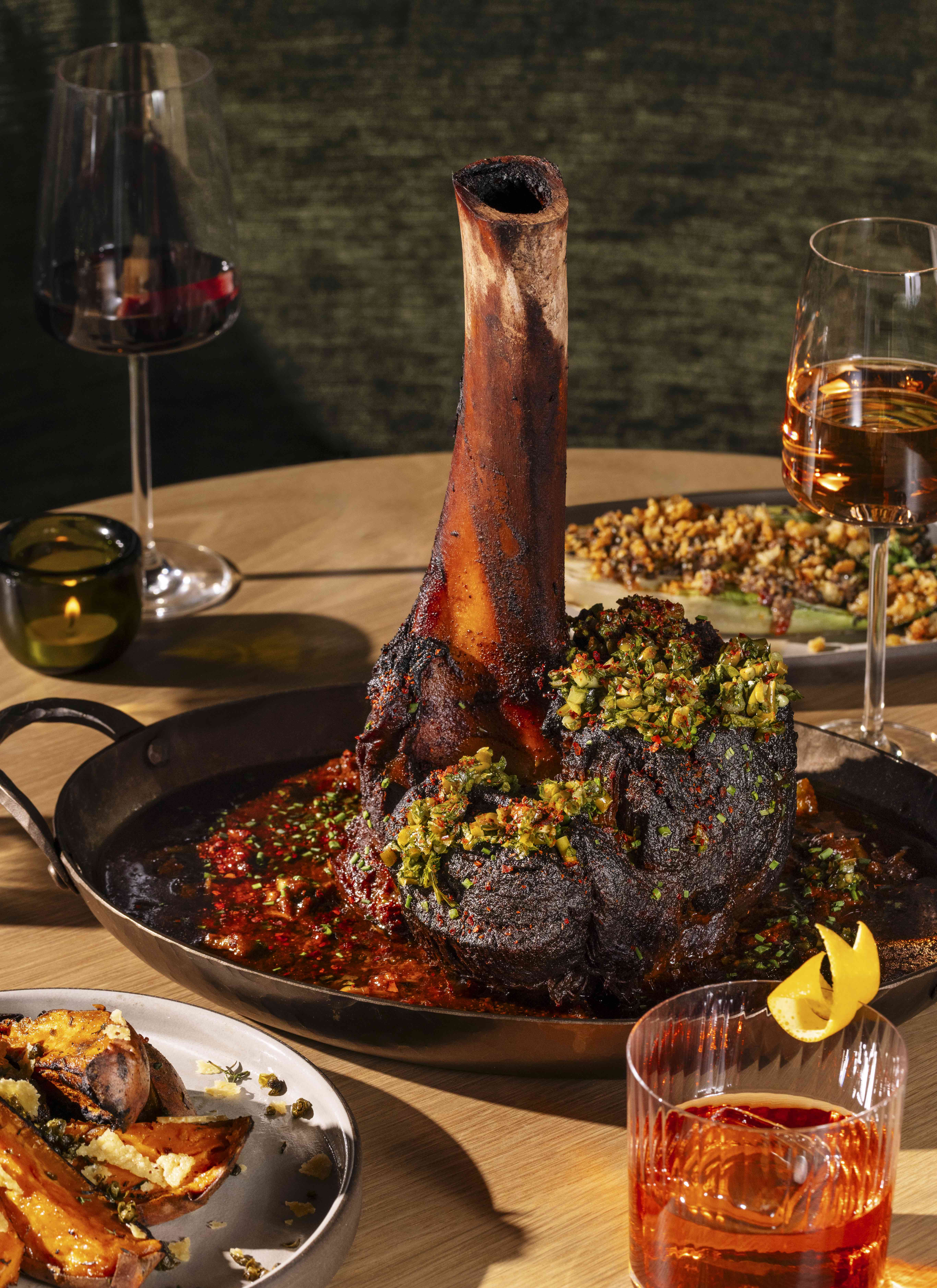 Stellar Jay, located on the rooftop of Denver’s Populus hotel, offers a vibrant and nature-inspired dining experience with breathtaking views of the city skyline and the Rocky Mountains. The restaurant’s lively atmosphere is complemented by bold wood-fired cuisine, celebrating live-fire cooking techniques that elevate fresh, seasonal ingredients. Stellar Jay invites guests to share creative small plates and grilled dishes, featuring everything from wild game to vegetables, all prepared with fearless flavors and an open flame. The design reflects the dynamic colors of a treetop canopy, with striking installations like “The Canopy” light sculpture and a Yakisugi-inspired wall of charred wood. With an emphasis on local, sustainable sourcing, Stellar Jay highlights Colorado’s agricultural bounty, while its outdoor terrace offers stunning panoramic views of the Colorado State Capitol and Civic Center Park. This is a destination for bold flavors, vibrant cocktails, and unforgettable moments.