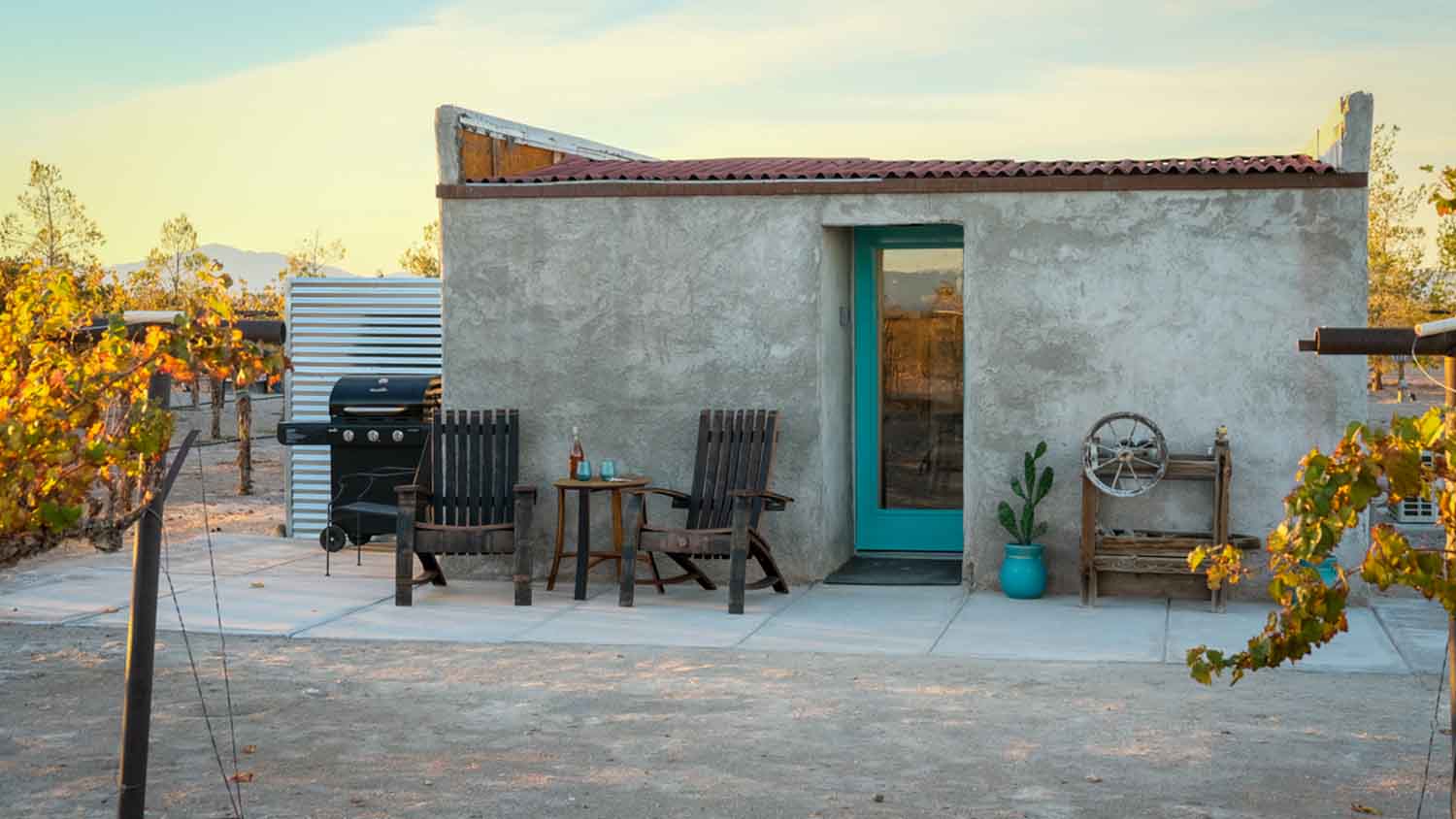 Located 20 minutes from the Death Valley Junction entrance of Death Valley National Park, Tarantula Ranch offers visitors a basecamp while exploring Death Valley and Ash Meadows National Wildlife Refuge. The campground is positioned around a small family vineyard and offers five campsites, three glamping sites, and a private studio apartment available year-round. In addition, this pet-friendly spot boasts a community area (The Wine Hall), an outdoor kitchen, an outdoor shower, amazing night skies… and strong wi-fi.