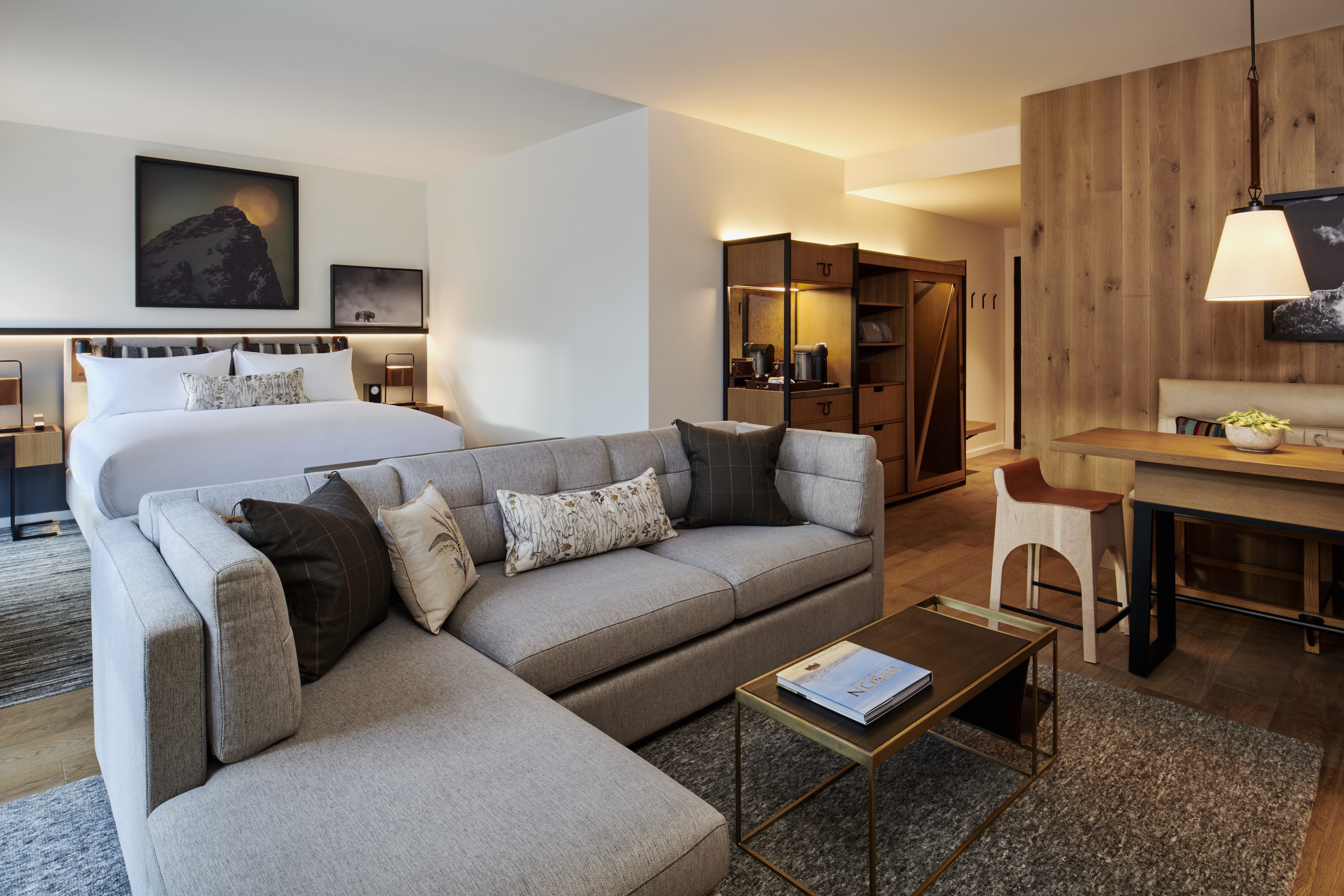 The only hotel on Jackson’s historic Town Square, The Cloudveil brings understated luxury and a refined, yet relaxed sensibility to the valley. Rooted in the destination, people, and soul of Jackson Hole, The Cloudveil is located at the gateway to the Grand Teton National Park, one hour south of Yellowstone National Park, and in the center of the town’s boutique shops, restaurants and galleries. Capturing a true sense of place and offering a modern sanctuary inspired by the organic elements of its locale, The Cloudveil boasts 100 guest rooms and suites; a European bistro-style restaurant and bar named “The Bistro” helmed by Gavin Fine and Fine Dining Restaurant Group; an expansive rooftop terrace overlooking Jackson’s Town Square and Snow King Mountain; a tranquil outdoor pool and garden; a state-of-the-art fitness center; and 7,500 square feet of indoor-outdoor meeting and event space featuring fireplaces, fire pits, and spectacular views.