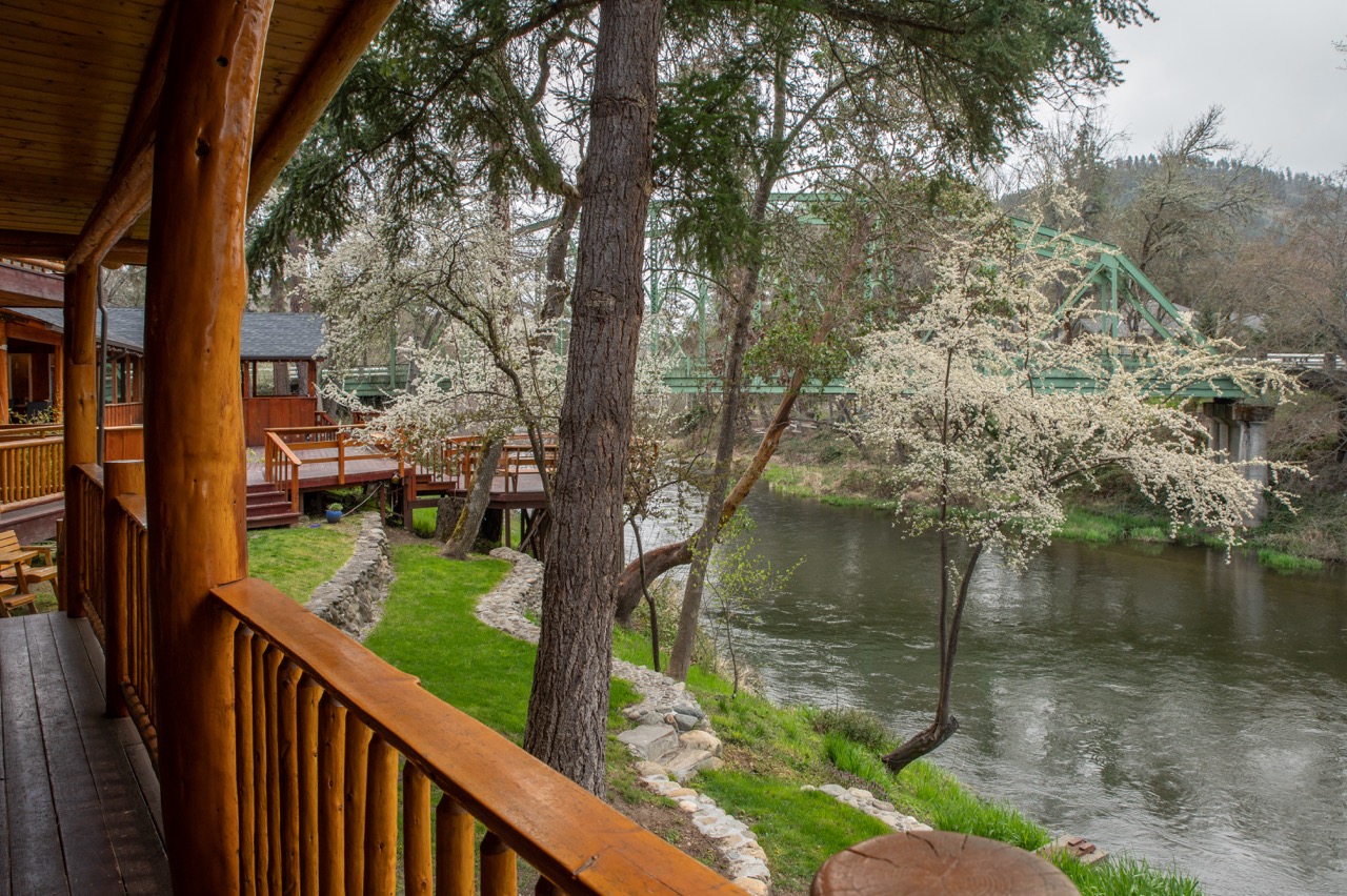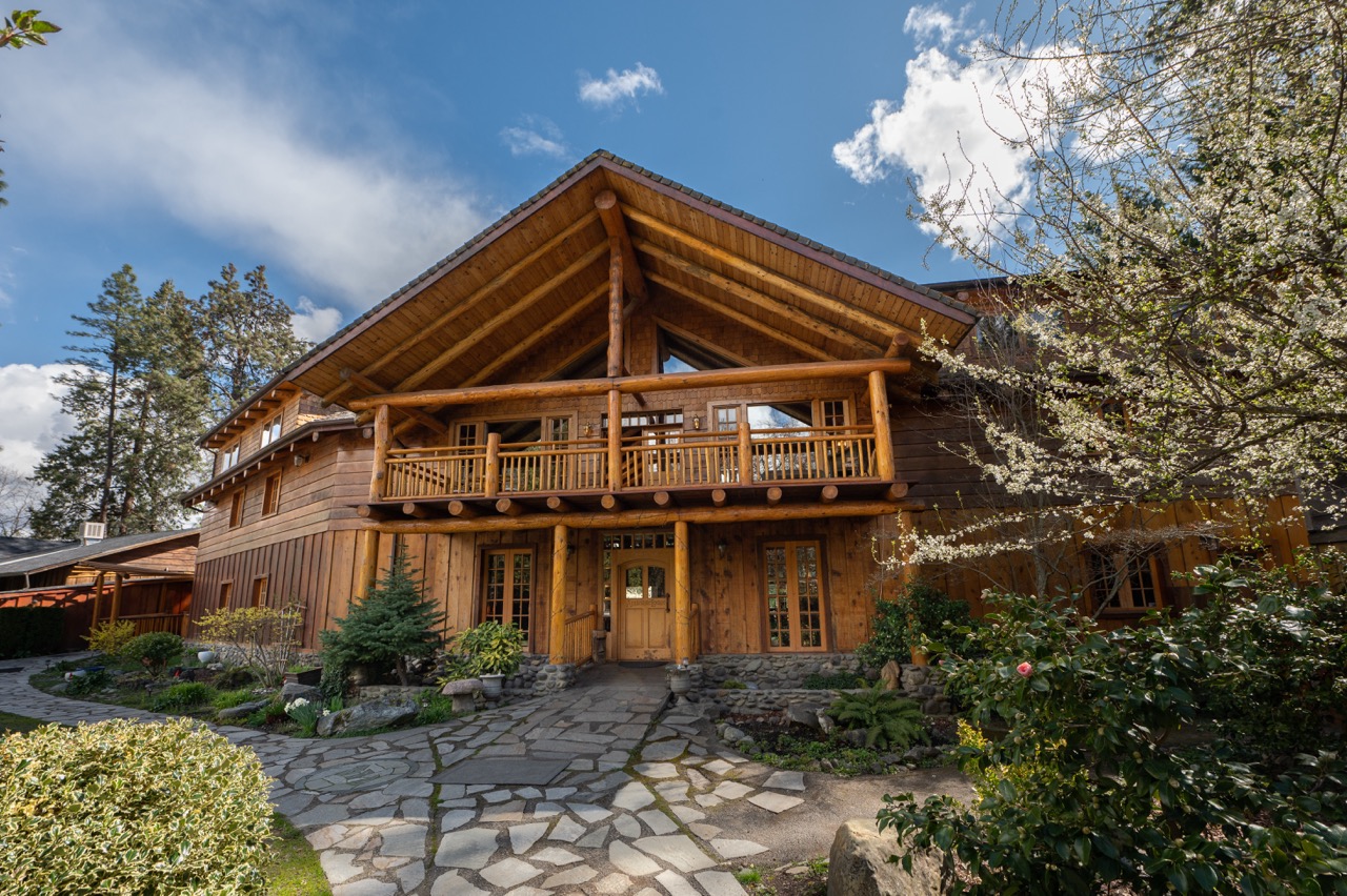 The lodge, constructed from hand-skinned logs of pine, fir, and redwood, offers an authentic river lodge feel. Rooms feature a balcony with views of the Applegate River and the historic Pioneer Bridge, within a stone’s throw of esteemed wineries at the heart of the area’s natural splendor.
