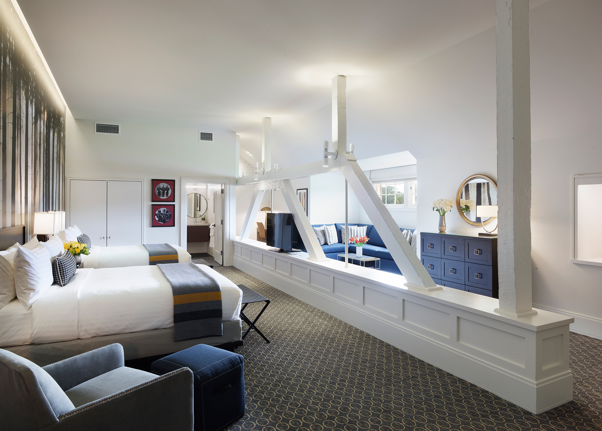 Lodge at the Presidio is San Francisco’s closest lodging to the Golden Gate Bridge. The 42-room, three-story hotel is housed in former US Army barracks, built between 1895-97 and is LEED Gold certified. The Presidio’s rich history is showcased throughout the property with artisan details and memorabilia, complemented by contemporary finishes and furnishings. Art and design “bring the outdoors in” by reflecting the beauty of the Presidio’s national park setting. Guests will enjoy a courtyard garden with fire pit, a front porch with rocking chairs, and a large dining room lounge with a fireplace.