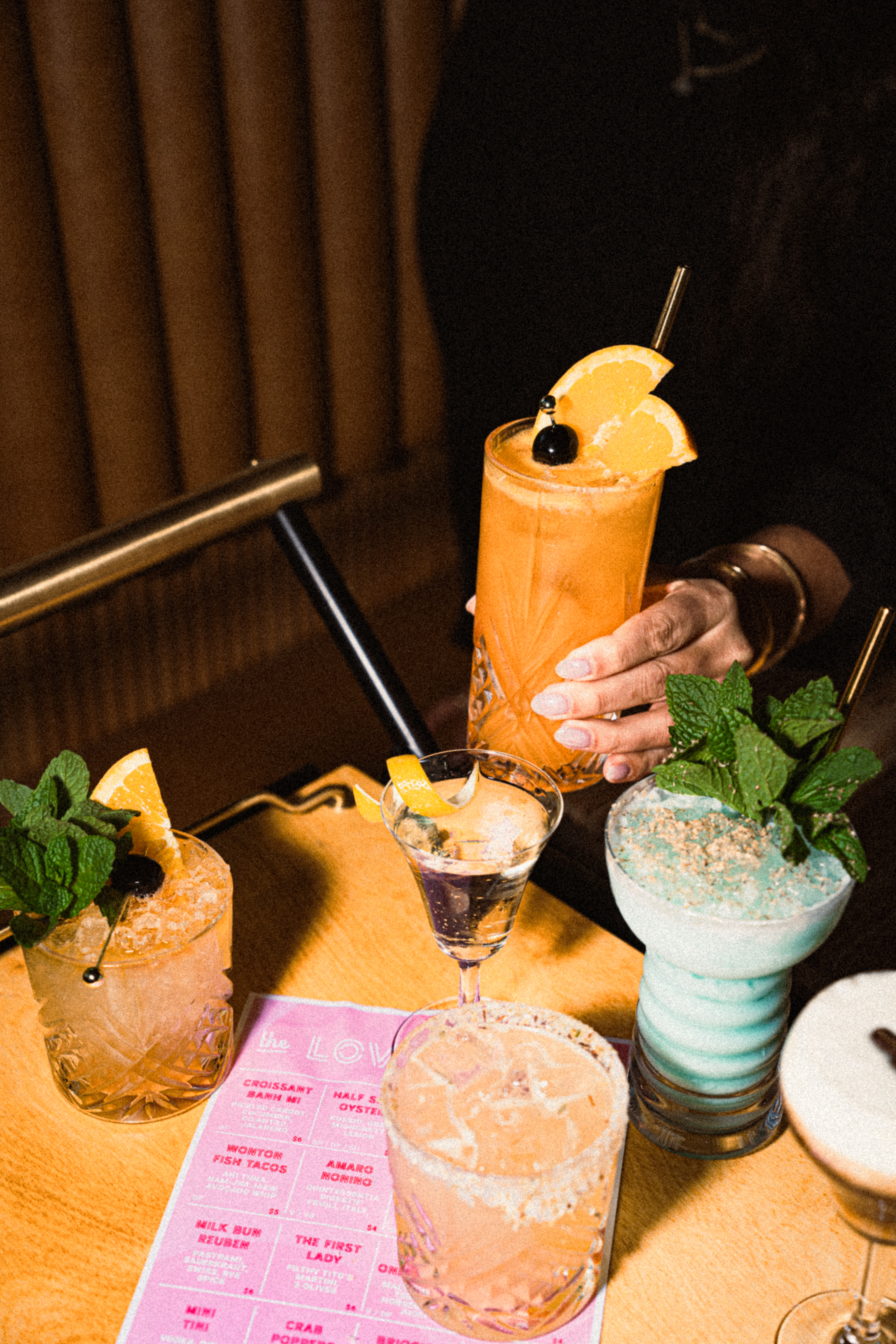This brand new cocktail bar in Portland, Oregon’s Slabtown neighborhood throws a party every night, with table side bar cart service and a bingo-style menu of elevated snacks—all in a tropical-inspired setting under a central hanging palapa. Since opening in February 2024, guests line up every night to snack on Croissant Banh Mi (marinated pork, pickled carrot, cucumber, cilantro, sambal aioli), Oysters + Champagne for two (oysters on the half-shell, mignonette, mini champagne bottle), and Wonton Fish Tacos (ahi tuna, nam-jin jaew, avocado whip). This is the second project from restaurateur and chef Garrett Benedict, who opened the popular, vegetable-focused restaurant, G-Love (Garrett’s nickname growing up in Anchorage, Alaska), after working at renowned Michelin three-star The Restaurant at Meadowood in Napa, and the groundbreaking restaurant Ubuntu. The Love Shack is a bright spot on Portland’s new bar map.