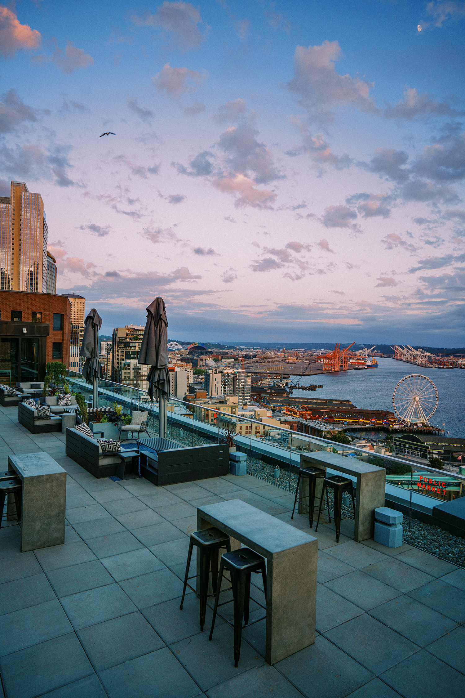 Perched above the urban hustle of Pike Place Market and Seattle’s downtown, The Nest—Thompson Seattle’s iconic rooftop bar, cocktail lounge, and terrace—showcases views of Elliott Bay and the Olympic Mountain Range beyond. The Nest specializes in handcrafted cocktails, wine, and small snacks featuring seasonal produce highlighting the Pacific Northwest. And while the plush bar buzzes with activity, cozy corners hidden amid lush greenery beckon those seeking a more intimate experience.