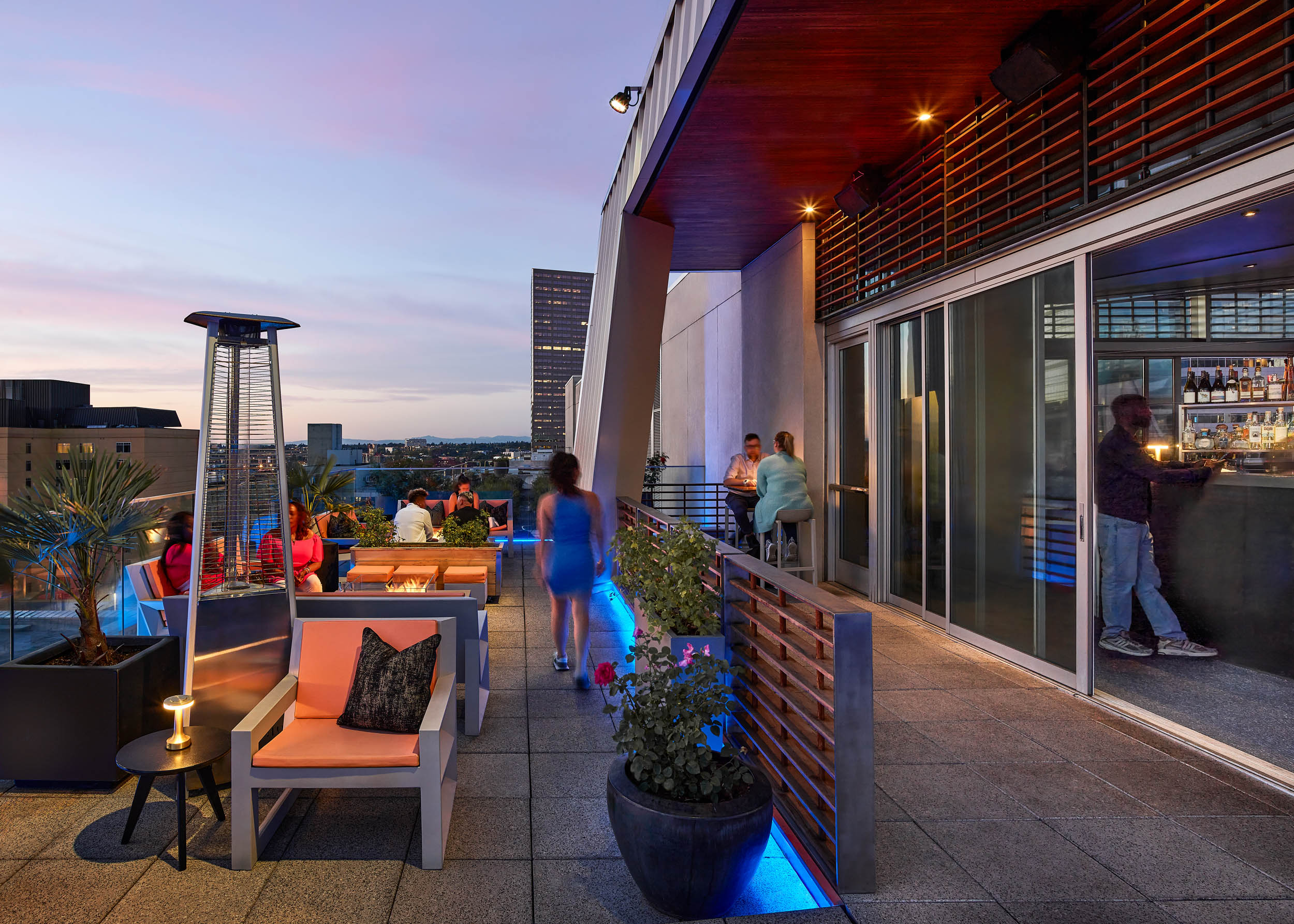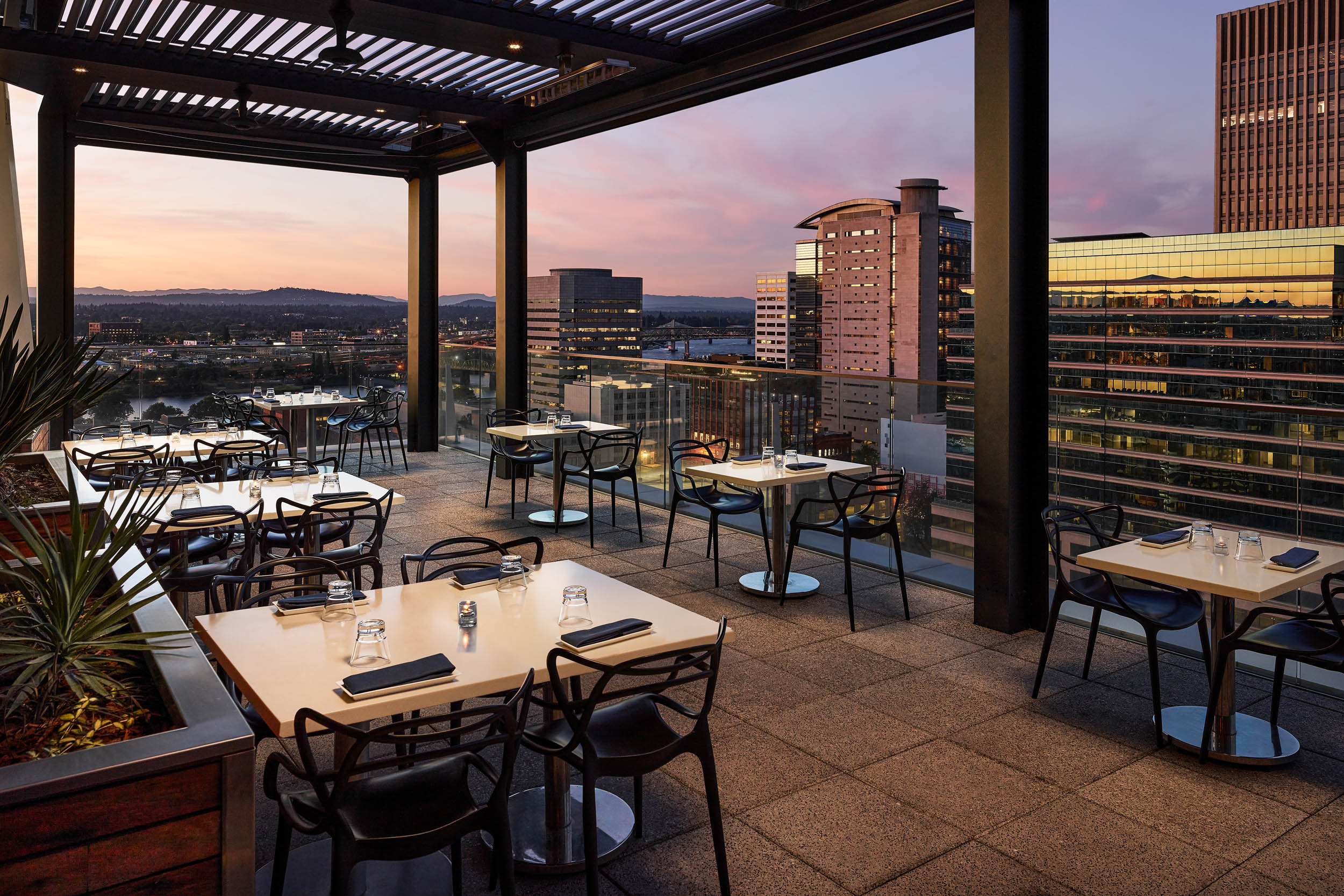 The Nines rests atop the landmark Meier & Frank Building and is a contemporary homage to the structures storied past both in its striking decor and impeccable service. A Marriott Luxury Collection Hotel, owned by Pebblebrook Hotels and managed by Sage Hospitality Group, the Nines is an important element in the revitalization of downtown Portland, Oregon. Opened in 2008, the Nines sets a new hospitality standard by achieving LEED Silver Certification from the Green Building Council, one of only a handful of hotels in the U.S. to receive this distinction. The hotel has original, commissioned art in every room throughout the hotel. Beyond the atrium lobby lie 331 luxurious guest rooms, including 46 suites and 2 Presidential Suites, 20,000 square feet of flexible meeting space, and two restaurants: Urban Farmer, a farm to table steakhouse, and Departure, offering Pan-Asian cuisine and cocktails with two outdoor decks and sweeping views of Portland.