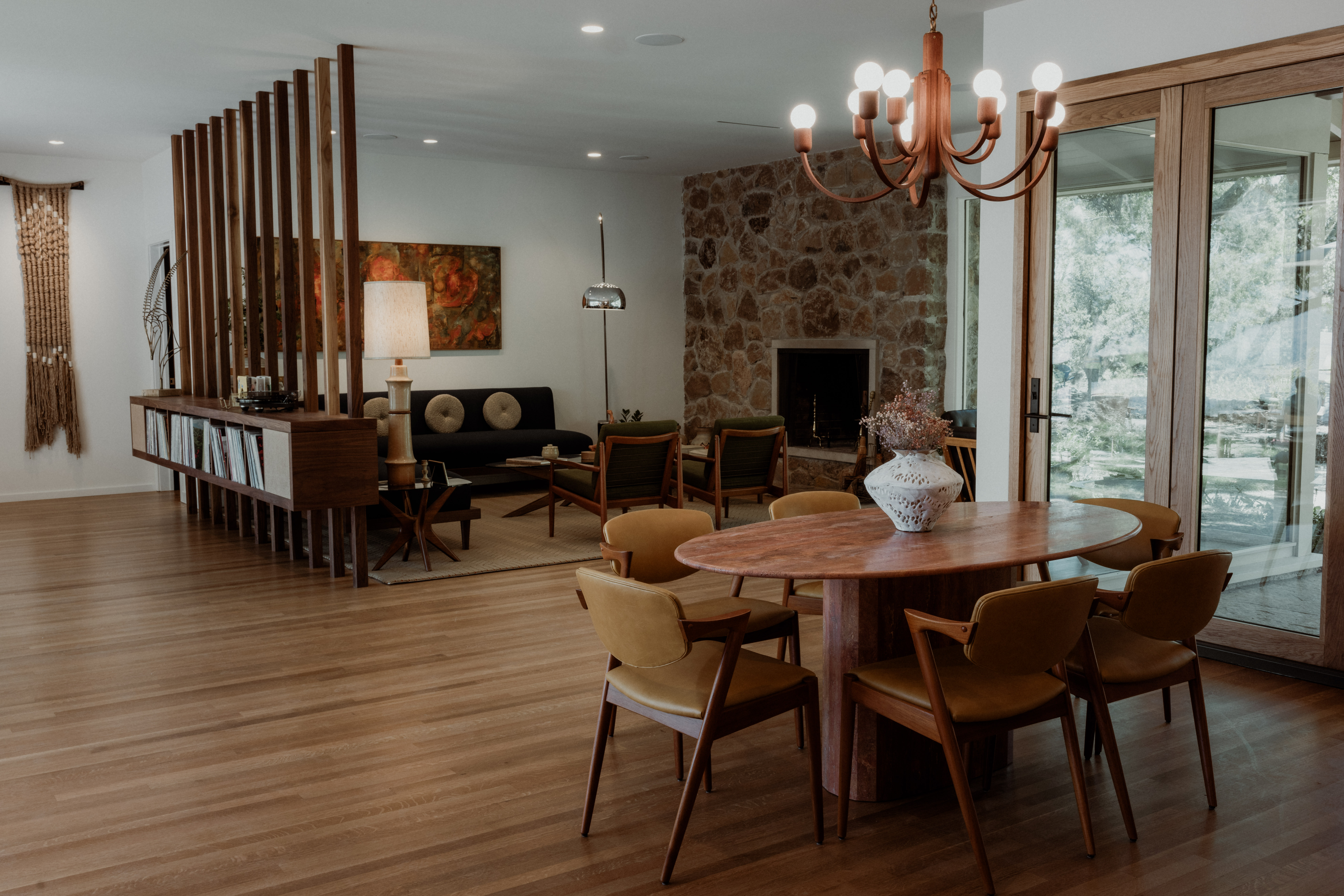 The Residence at Stony Hill, located on Spring Mountain in Napa Valley, reimagines an iconic, mid-century family home for a modern era and opens the doors to guests for memorable tasting experiences. Encompassed by forest and the Bothe-Napa Valley State Park, the Estate is a hidden pearl surrounded by nature with unparalleled views of the Napa Valley. The Residence, originally owned by Stony Hill founders Fred and Eleanor McCrea, was redesigned to preserve the legacy and aesthetic of the original home while bringing new life and a luxury focused experience. Inside, The Residence exudes a warm and welcoming feel.