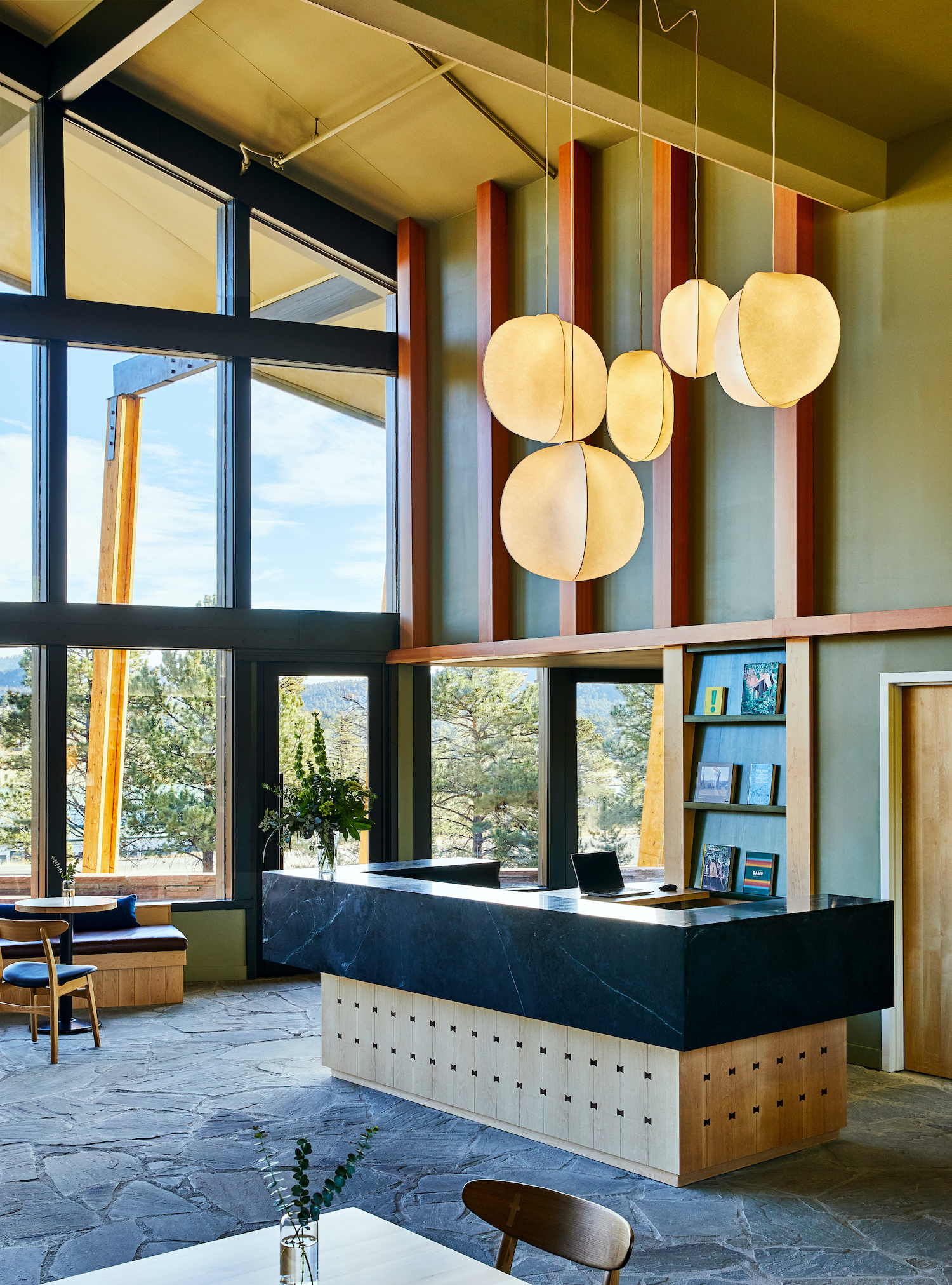 Designed by Electric Bowery to pay homage to the rustic wilderness that surrounds it, Trailborn Rocky Mountains is the first property from the new hospitality brand, Trailborn. Often referred to as “Colorado’s original playground,” the picturesque mountain town of Estes Park is known for its scenic landscape, free-roaming wildlife, world class hiking and outdoor recreation. Situated at the eastern entrance to Rocky Mountain National Park, the sprawling campus features 86 hotel rooms across two properties, a restaurant, bar, and café, two retail markets offering a selection of curated local products and grab-and-go items, and extensive outdoor public areas, including two seasonal pools, patios, porches, and communal fire pits, all with views of the surrounding Rocky Mountains. Suitable for solo, group, and family travel, room layouts include king, double queen and bunk options, adjoining rooms, and a deluxe suite.