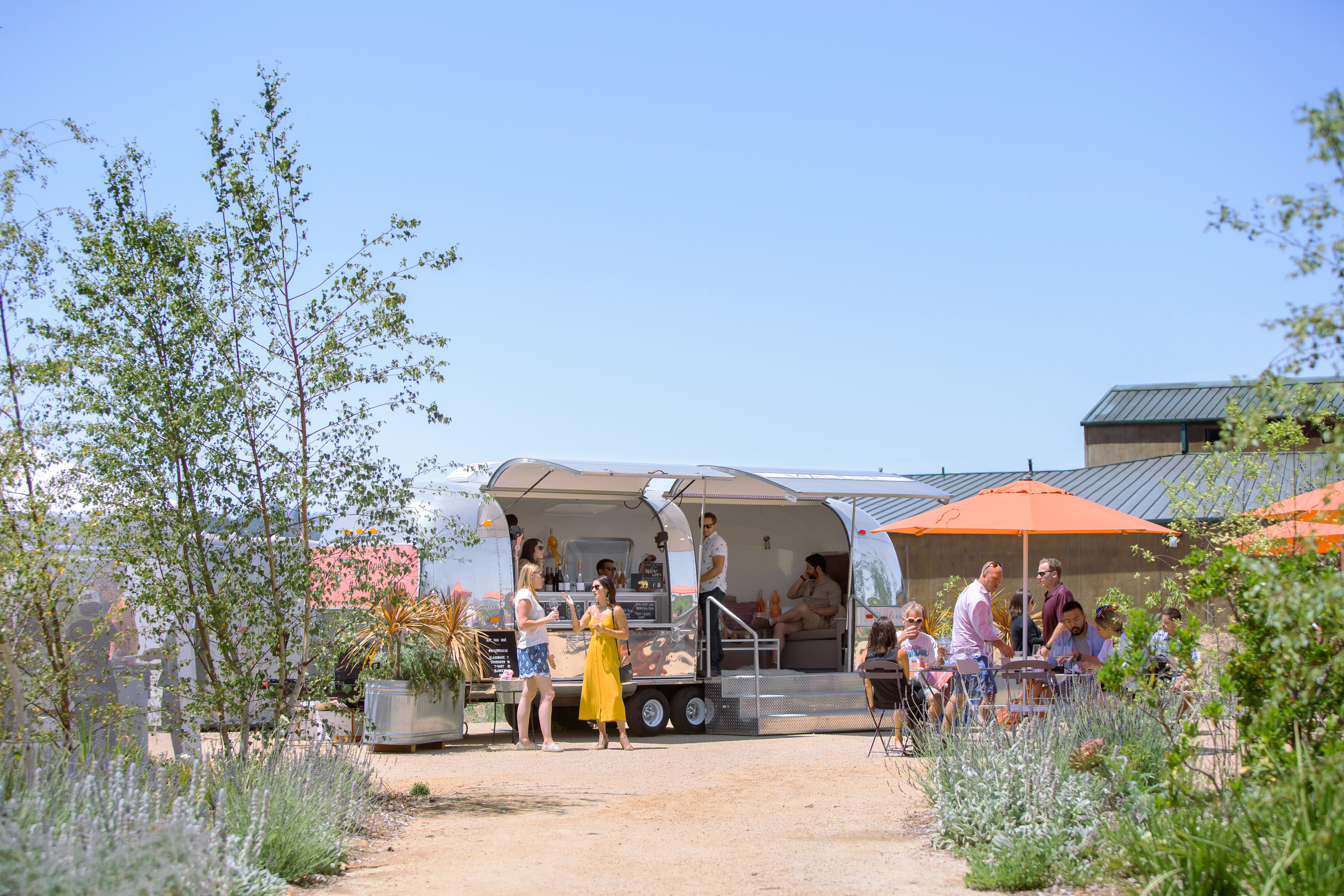 A custom 1969 Airstream Overlander Trailer parked adjacent to Chamisal Vineyards pours Malene’s Provençal-style rosé on tap.